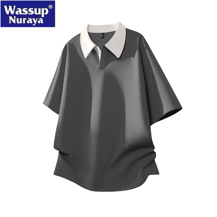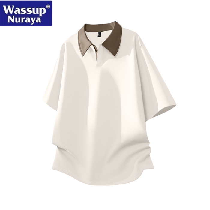 WASSUP Nuraya潮牌撞色POLO衫短袖男夏季寬松百搭翻領半袖T恤上衣