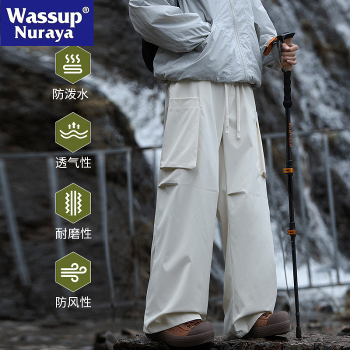 WASSUP NURAYA沖鋒褲子男登山褲春秋戶外防水直筒寬松工裝休閒褲