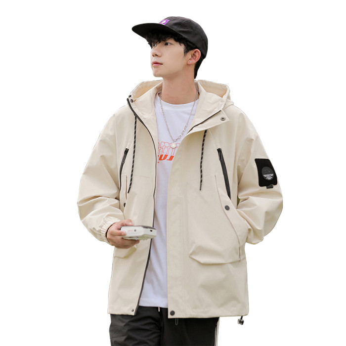 WASSUP NURAYA戶外運動休閒連帽夾克男青年防潑水沖鋒衣工裝外套