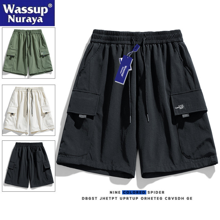WASSUP Nuraya潮牌短褲男夏季寬松工裝運動冰絲速乾休閒五分中褲