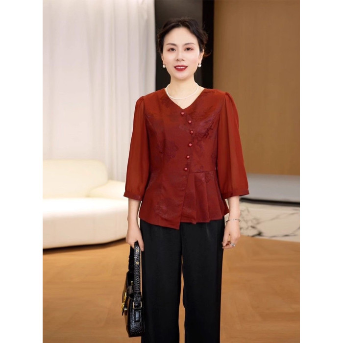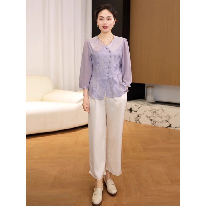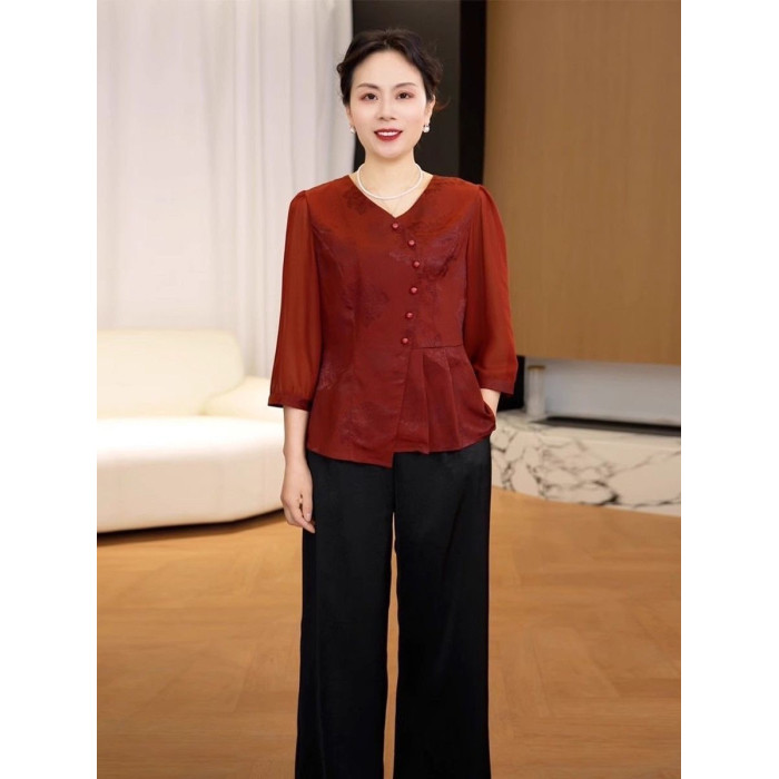2025新款媽媽夏季國風透氣打底衫中老年女裝中式洋氣減齡小衫上衣
