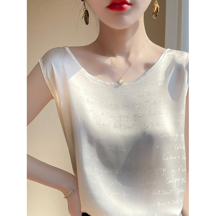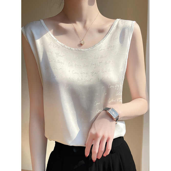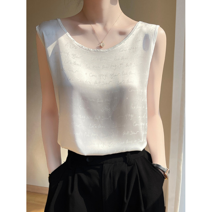 絲滑吊帶背心女西裝內搭緞面白色圓領無袖打底衫2025夏季上衣寬松
