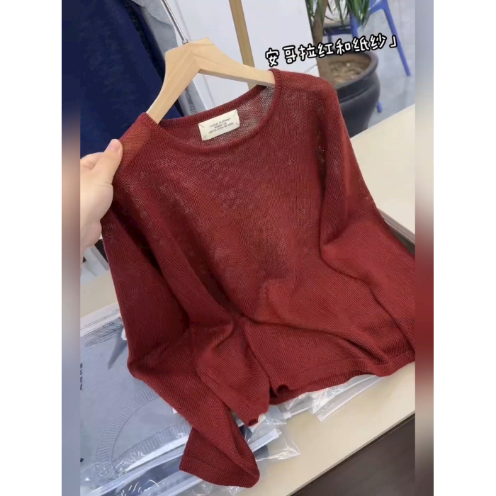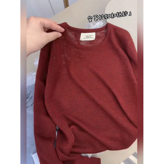 歐貨安哥拉紅針織打底衫女2025早秋新款洋氣高級時尚軟糯氣質上衣