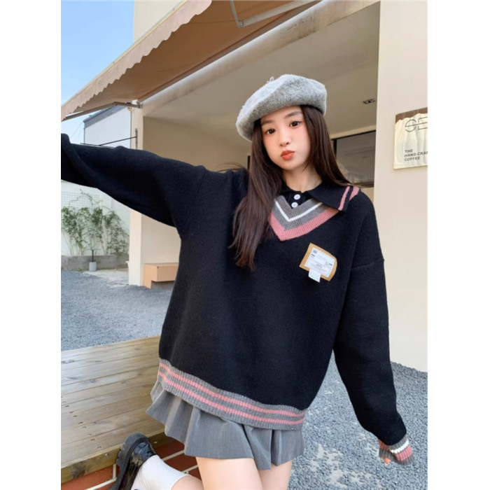 假兩件毛衣女秋冬學院風高中初中學生大童15嵗13少女12針織打底衫