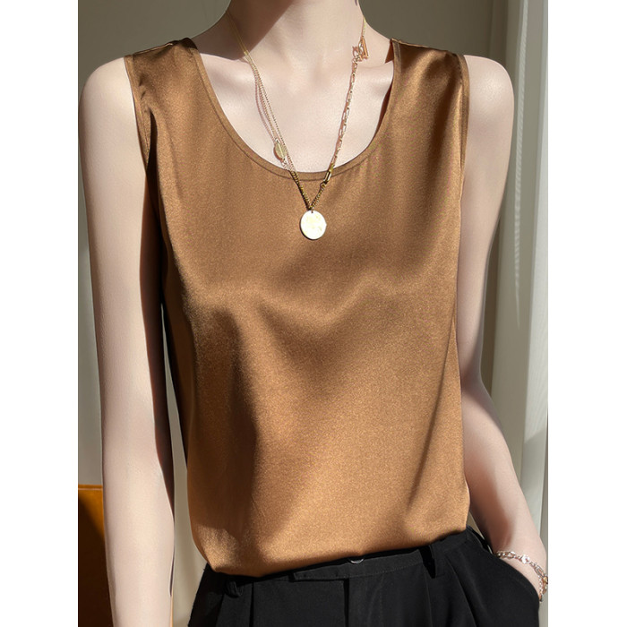 高階2025夏季新吊帶背心女高級感純色緞面無袖打底衫西裝內搭