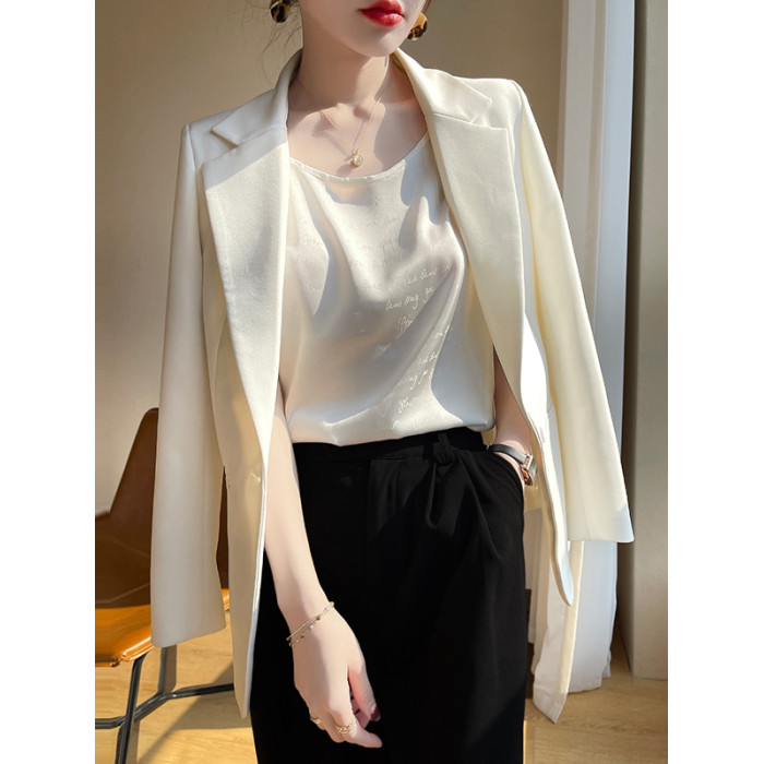 絲滑吊帶背心女西裝內搭緞面白色圓領無袖打底衫2025夏季上衣寬松
