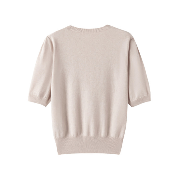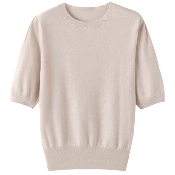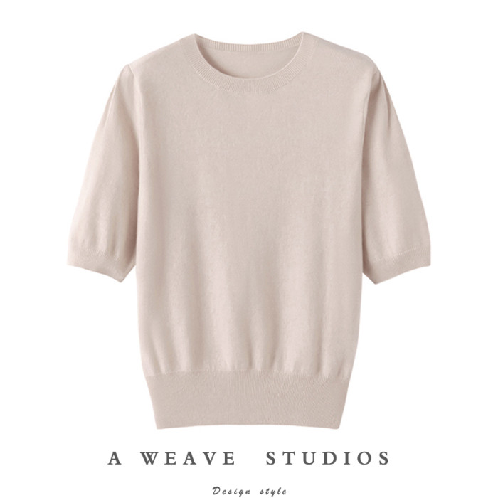 閉眼入不會出錯的款~好搭!圓領羊絨短袖女純羊絨毛衣打底衫春夏