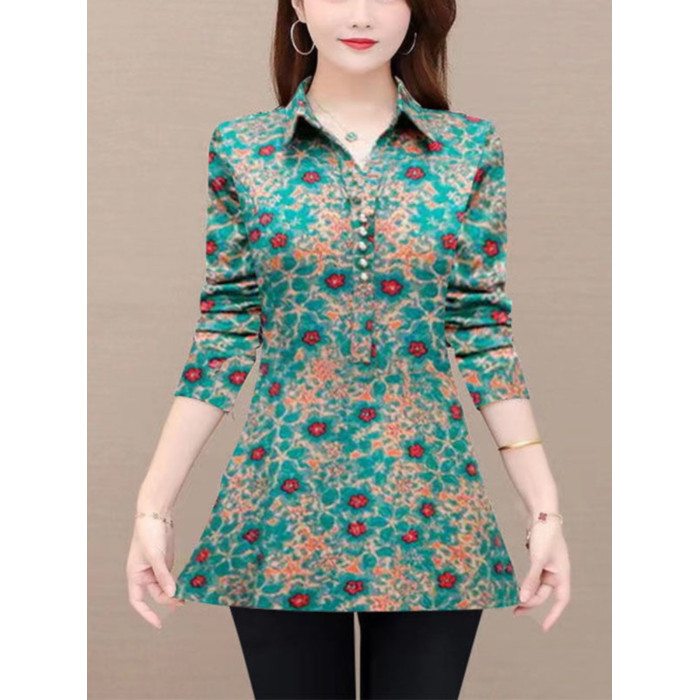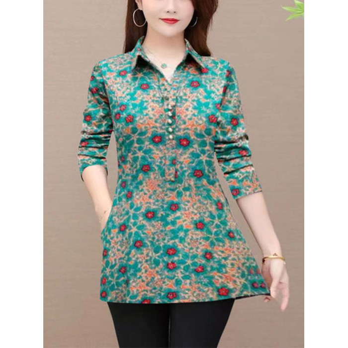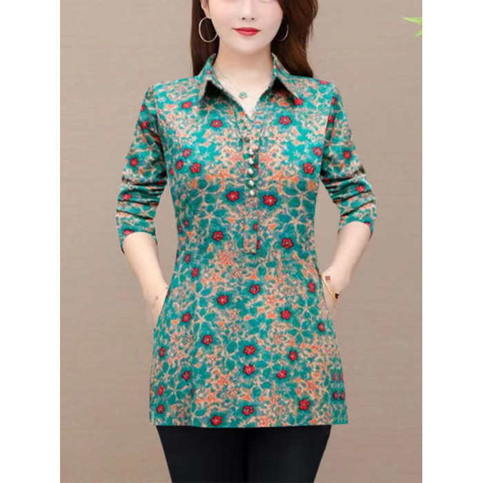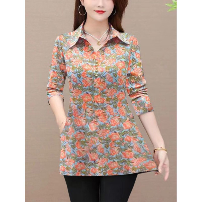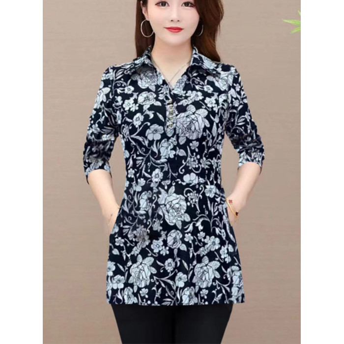 秋裝新款媽媽長袖中長款襯衫女中老年媽媽裝遮肉顯瘦上衣打底衫女