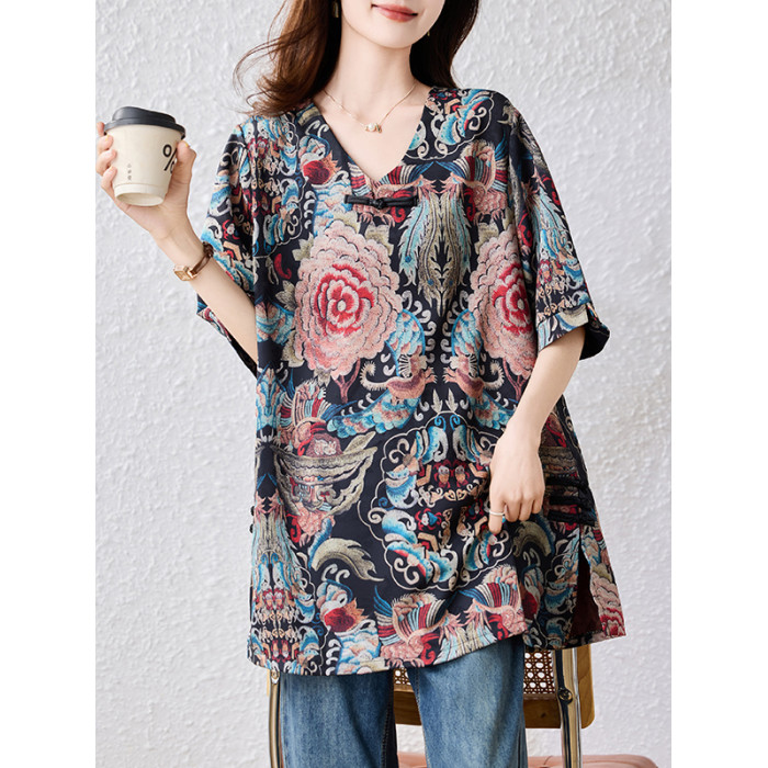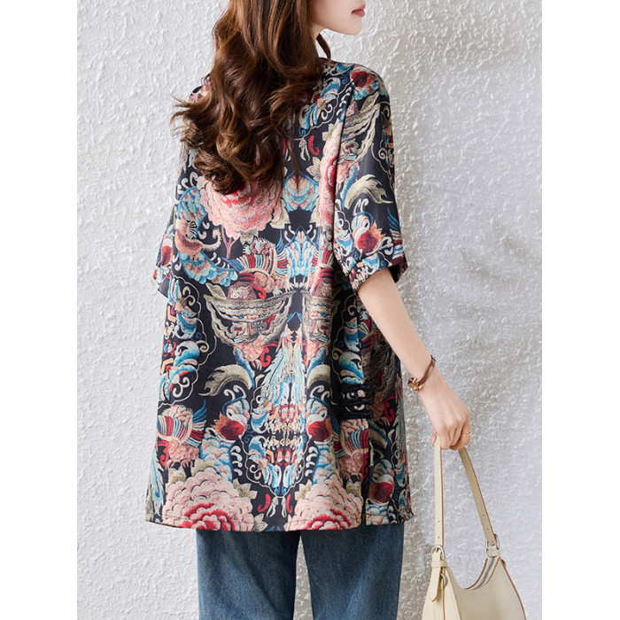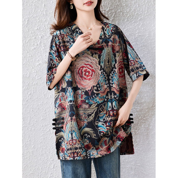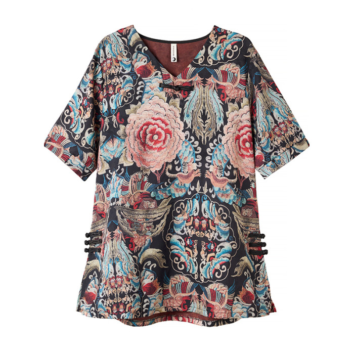 九月墨陌大碼盤釦國風時尚顯瘦上衣復古百搭氣質民族風寬松打底衫