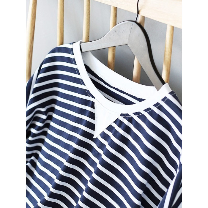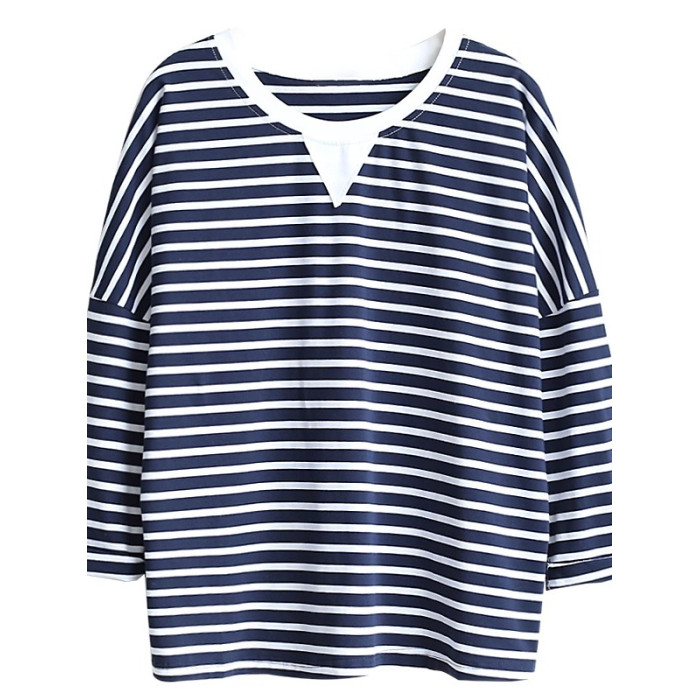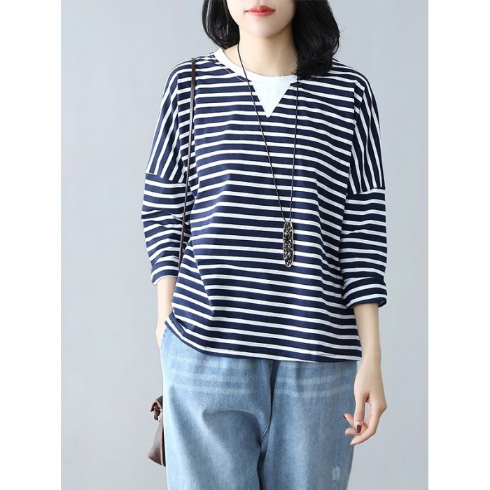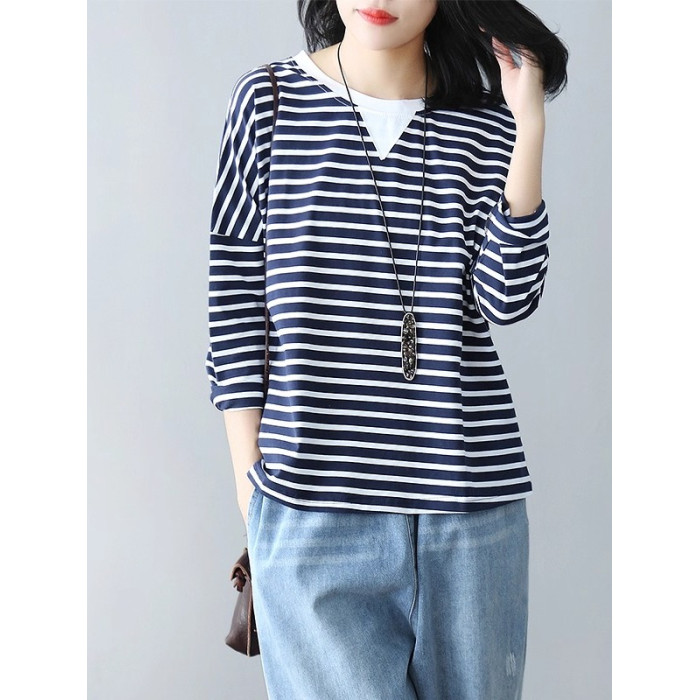 JOLIMENT圓領條紋長袖女2025夏季新款寬松顯瘦百搭顯瘦打底衫上衣