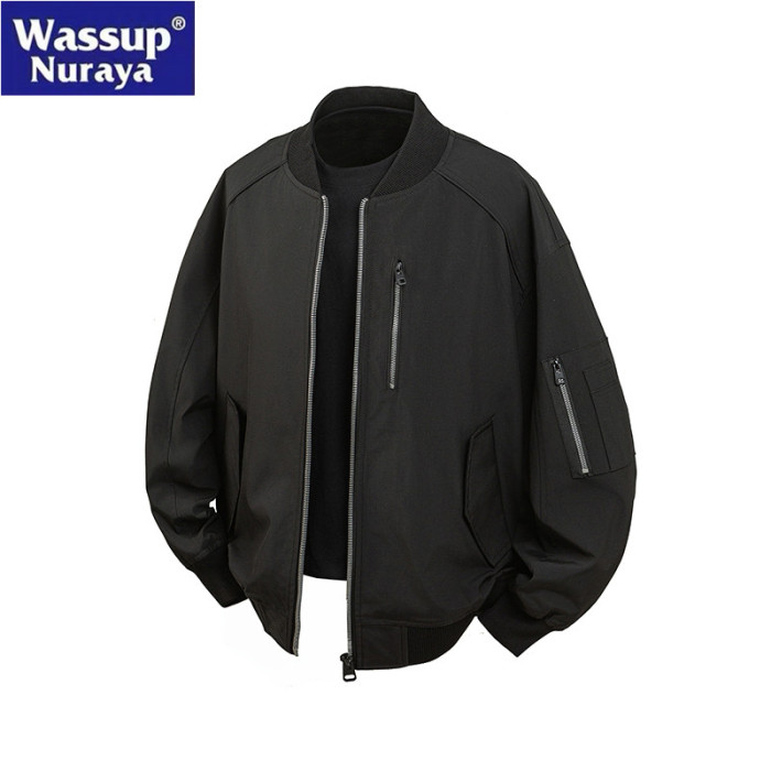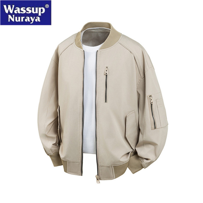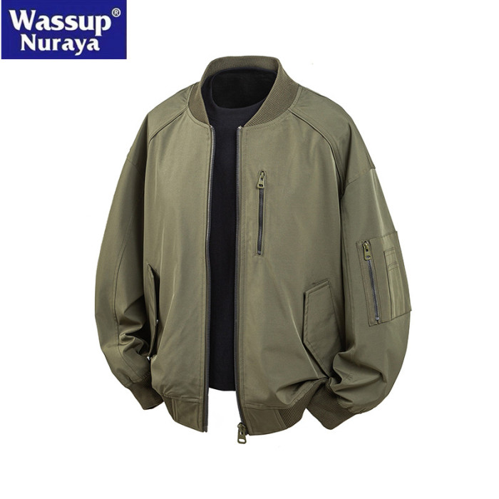 WASSUP Nuraya潮牌2025新款春秋美式飛行員夾克男寬松棒球領外套