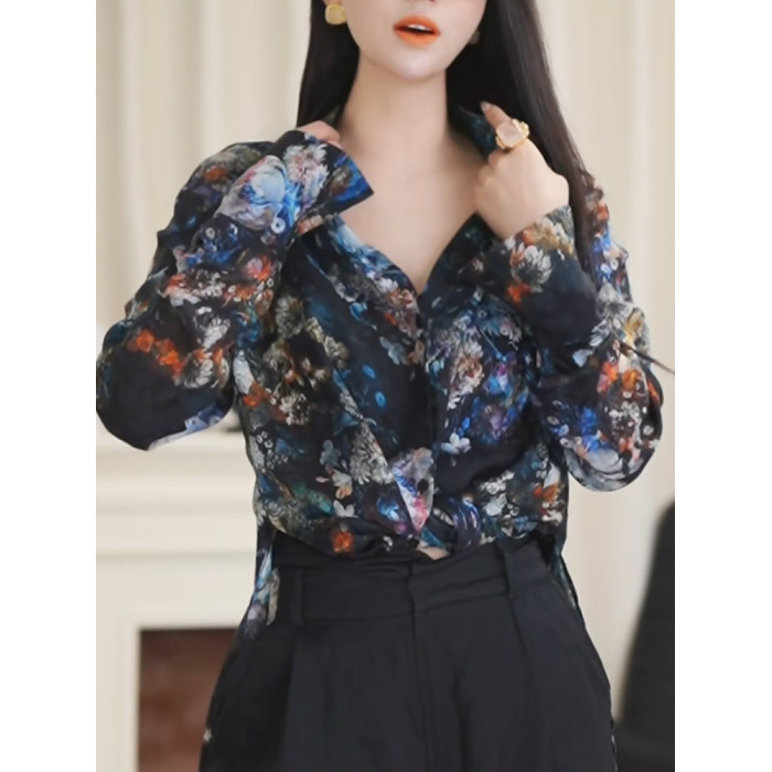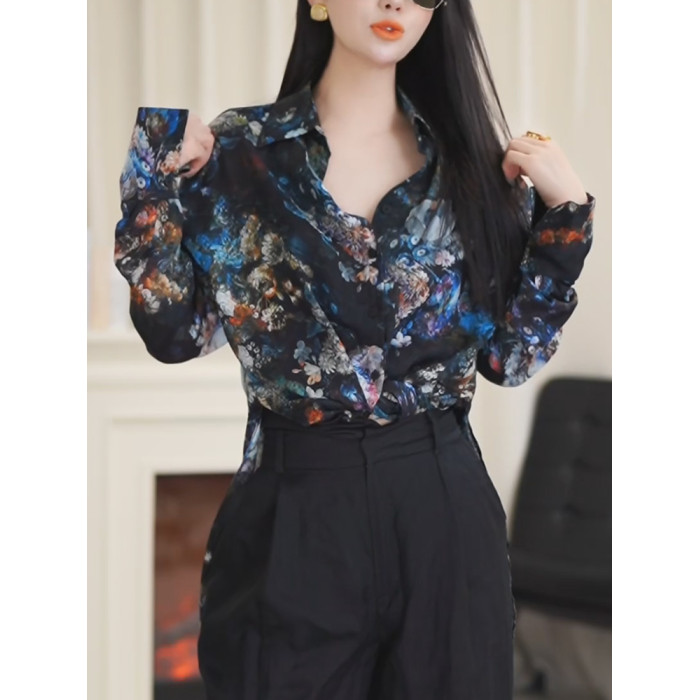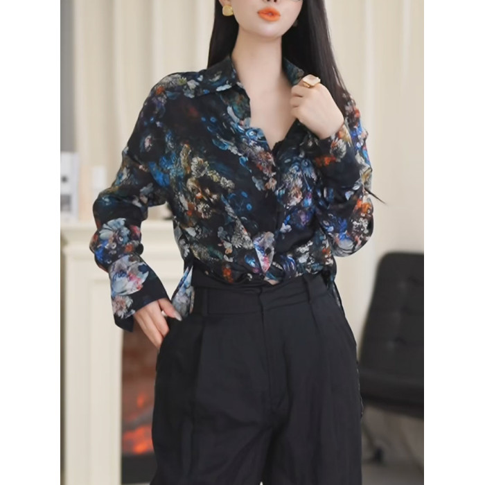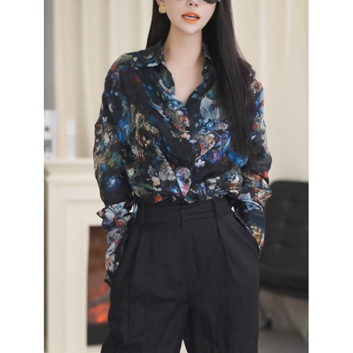 2025秋季新款大碼女裝胖MM復古印花長袖襯衫可露麗穿搭打底衫上衣