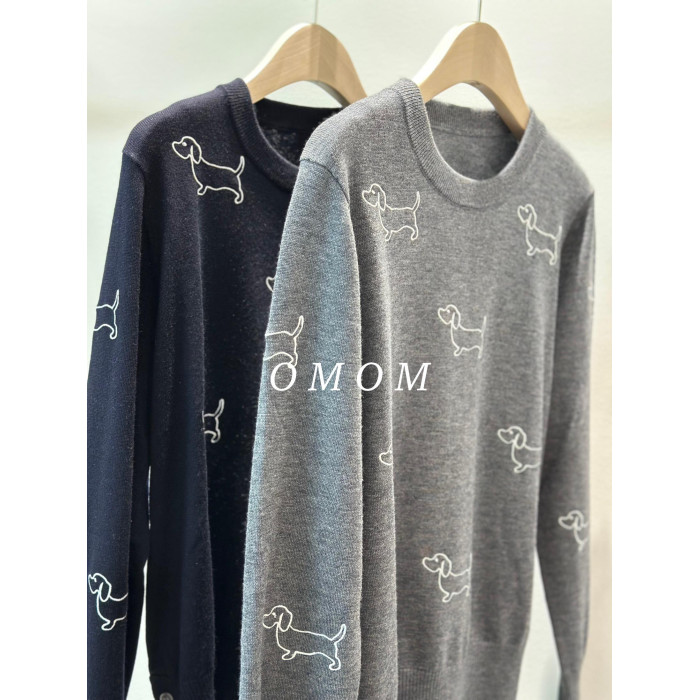 OMOM-2024秋冬新款狗狗刺綉學院風羊毛針織打底衫開叉 毛衣女