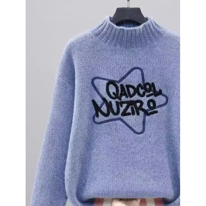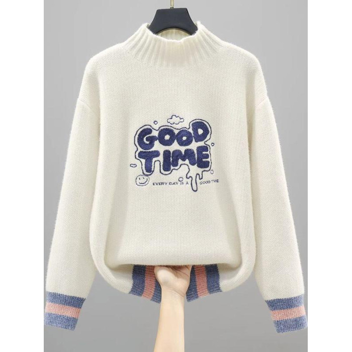 雪尼爾半高領毛衣女春秋冬季初中高中學生大童加絨加厚針織打底衫