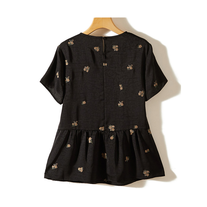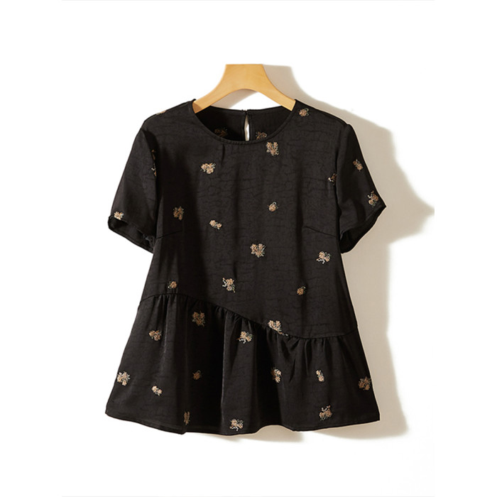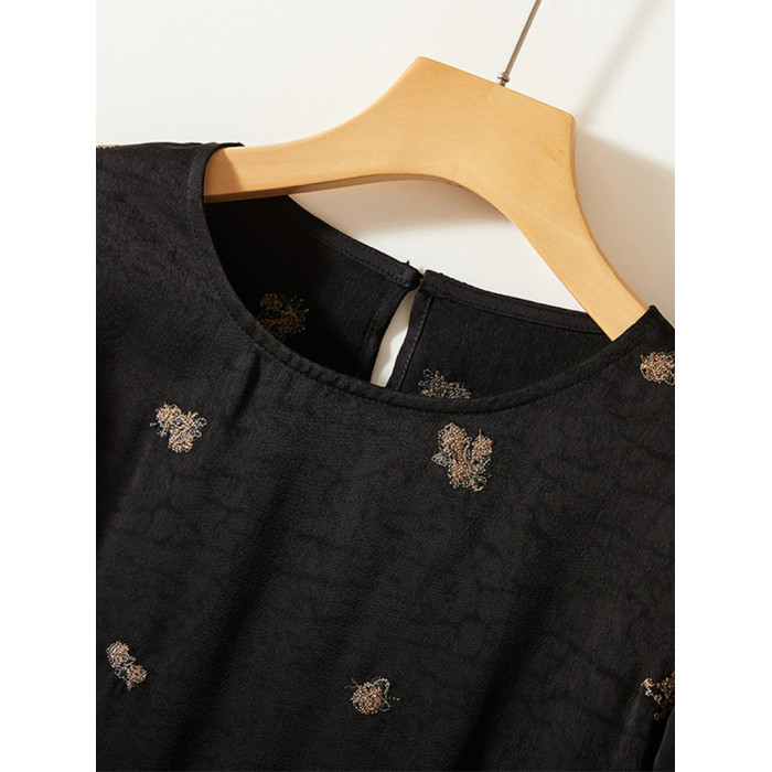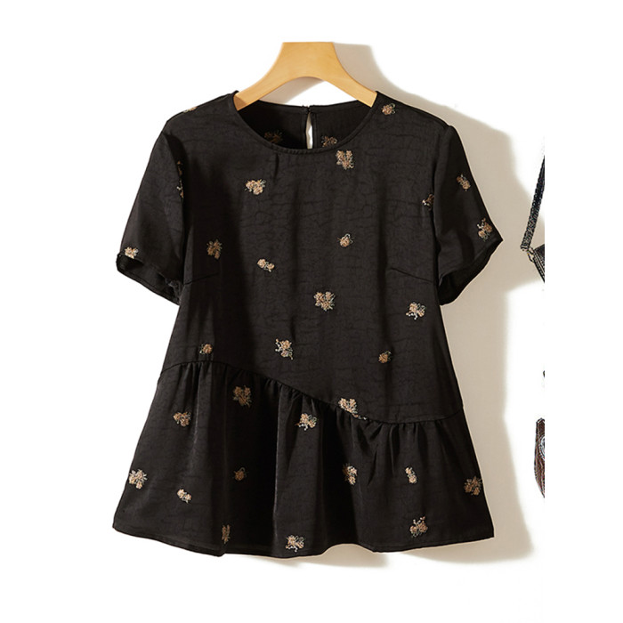 【高級輕奢】小香風金絲碎花醋酸打底衫女小裙擺寬松休閒娃娃衫夏