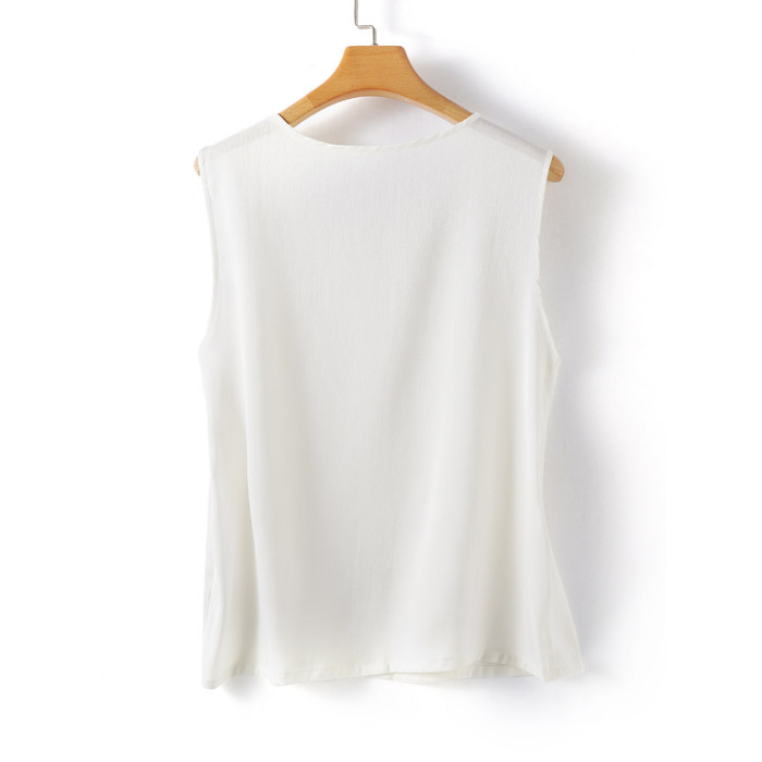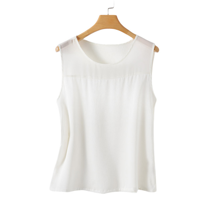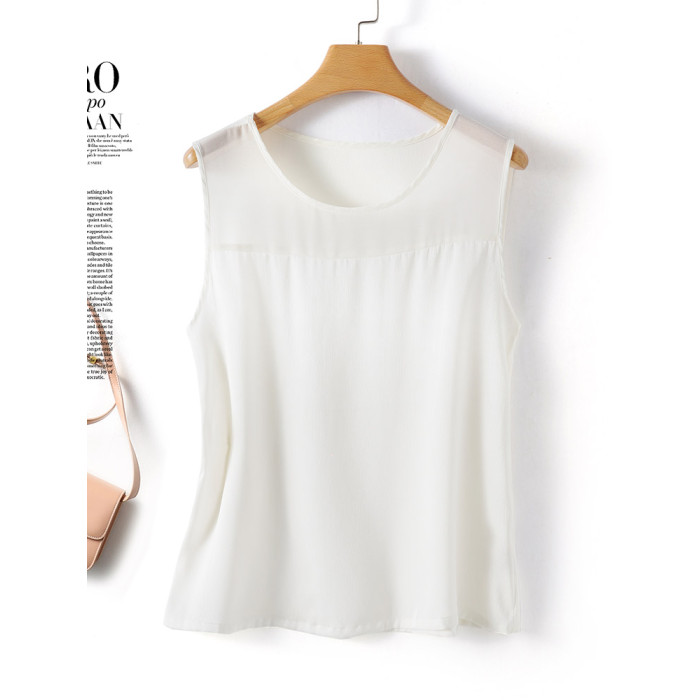 喬其紗杭州絲綢真絲上衣女2025夏季新款桑蠶絲圓領吊帶背心打底衫