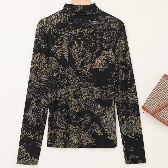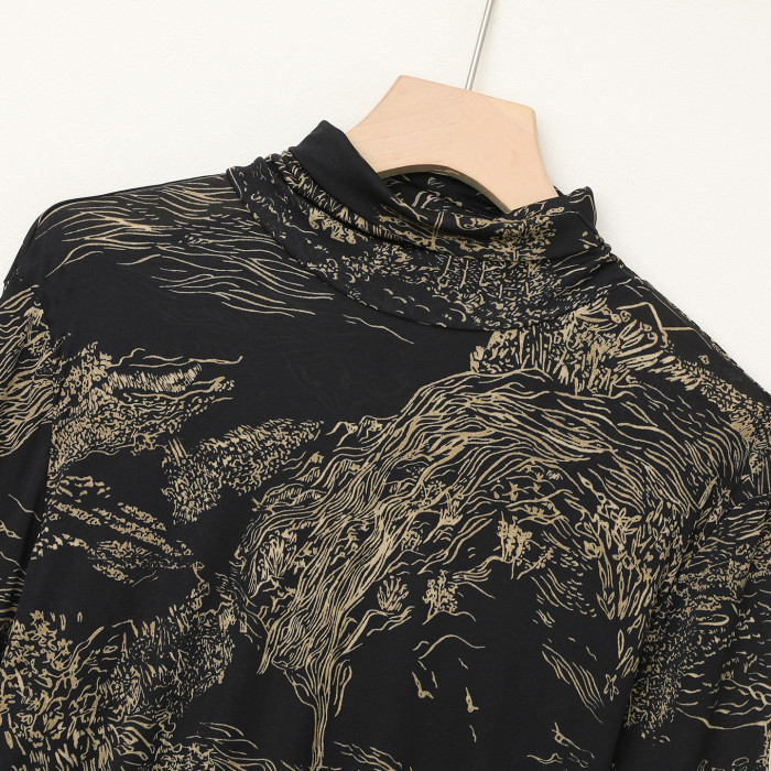 桑蠶絲時尚高領長袖女真絲加撚洋氣印花減齡氣質打底衫C9879T01