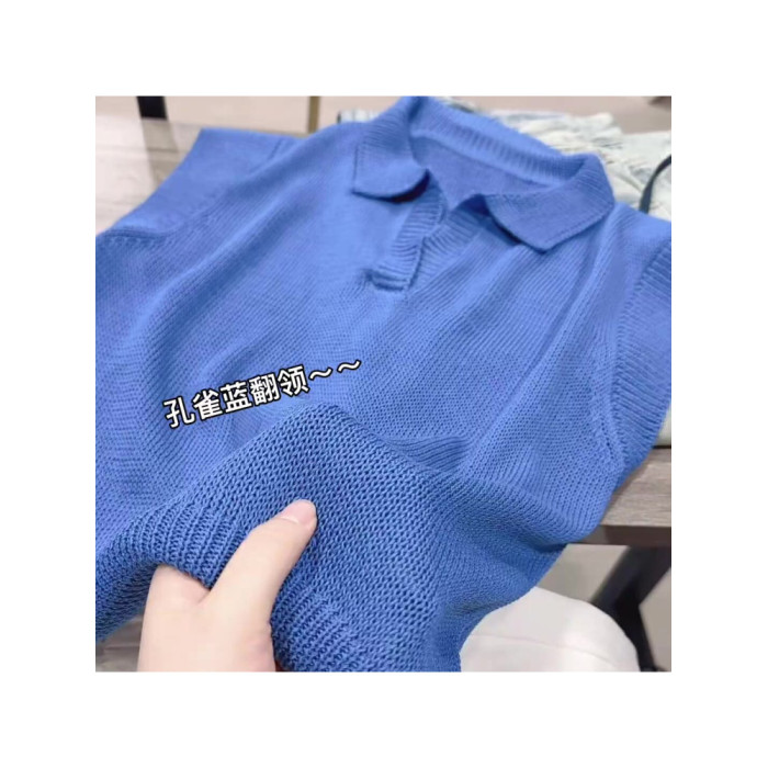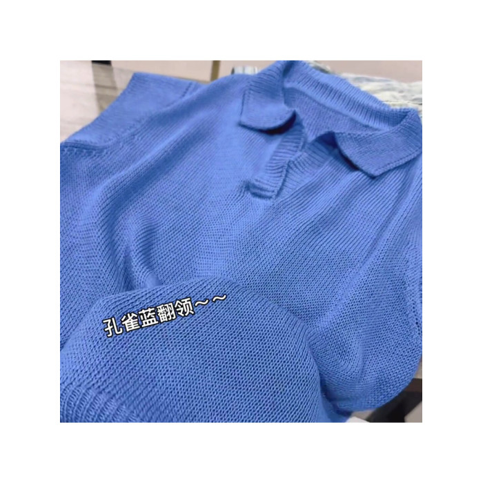 2025夏季新款時尚百搭翻領針織衫女高級感洋氣打底衫上衣