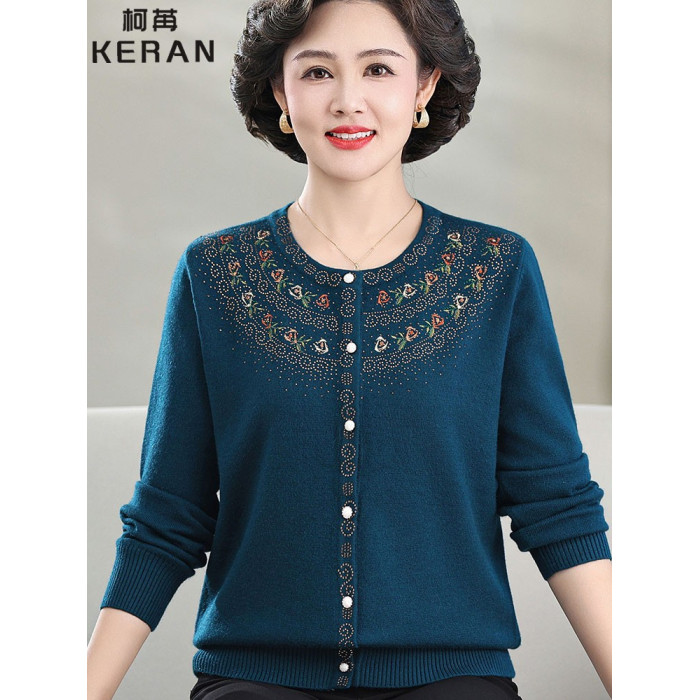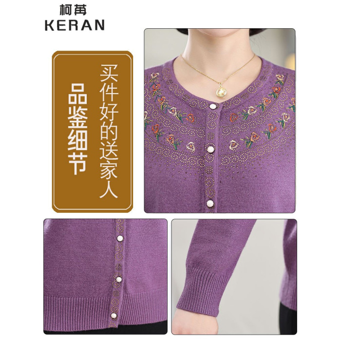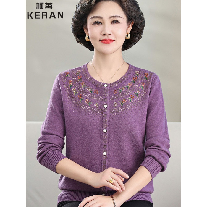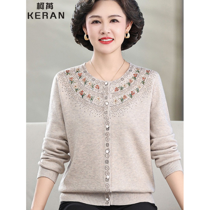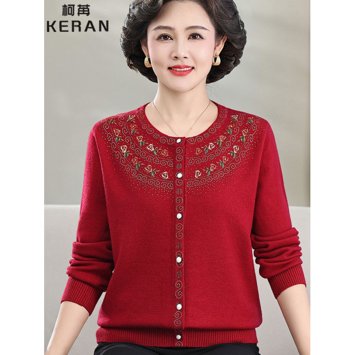 媽媽裝秋冬新款大碼針織衫上衣圓領開衫中老年女春秋毛衣打底衫