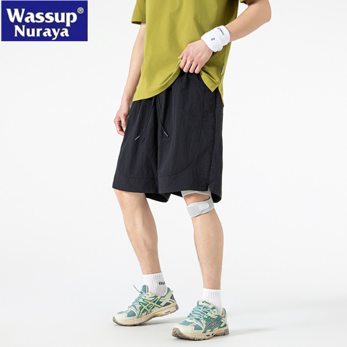 WASSUP NURAYA戶外輕薄五分短褲男士夏寬松沙灘速乾冰感休閒中褲