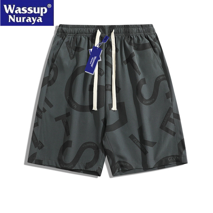 WASSUP Nuraya潮牌短褲男夏冰絲速乾運動休閒青年印花寬松五分褲