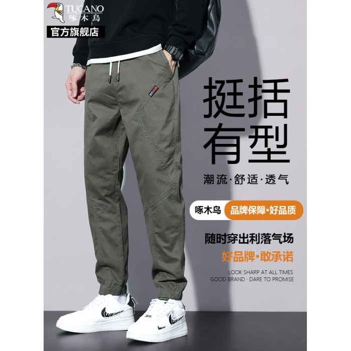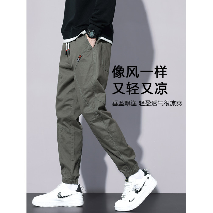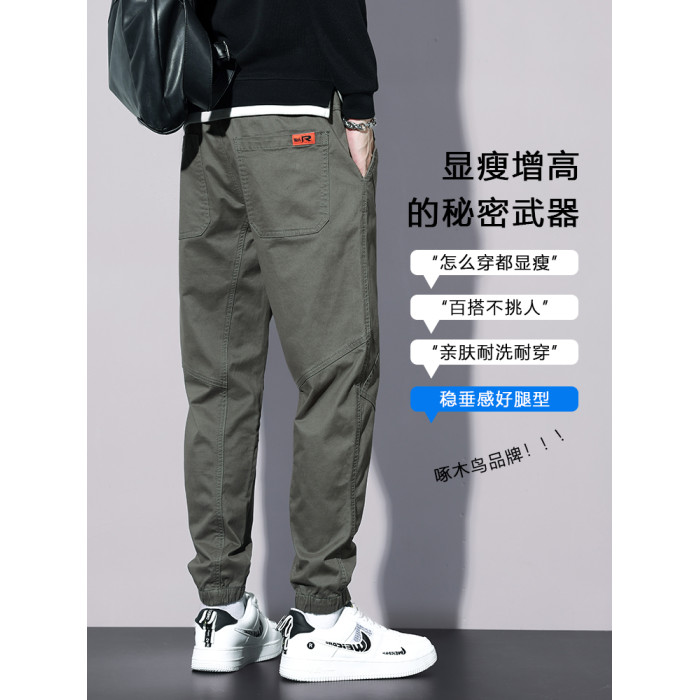 啄木鳥工裝褲子男款夏季薄款寬松純棉2025新款九分休閒運動褲子K
