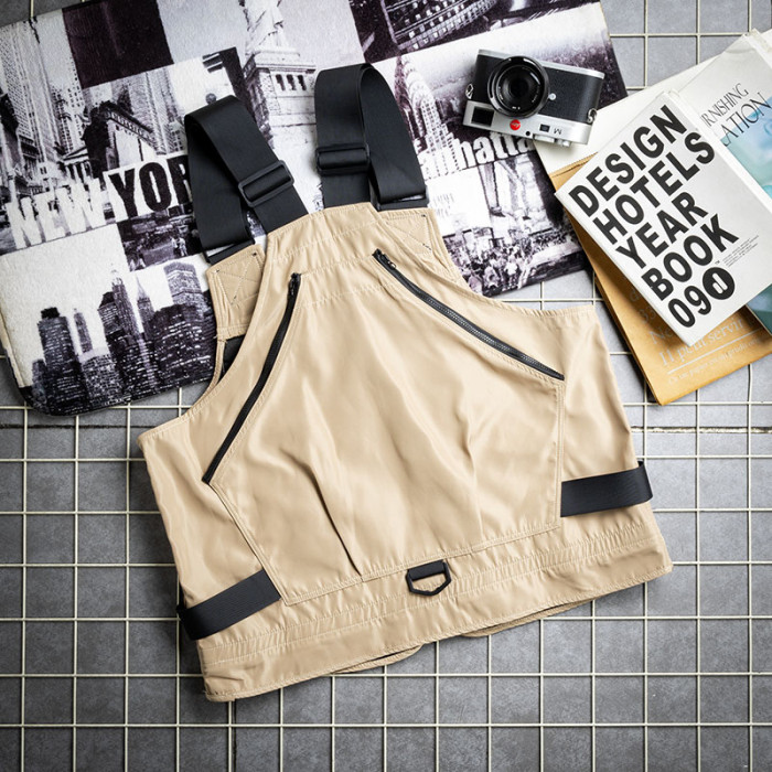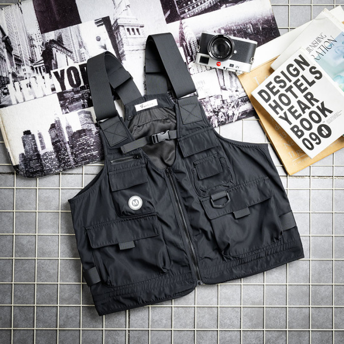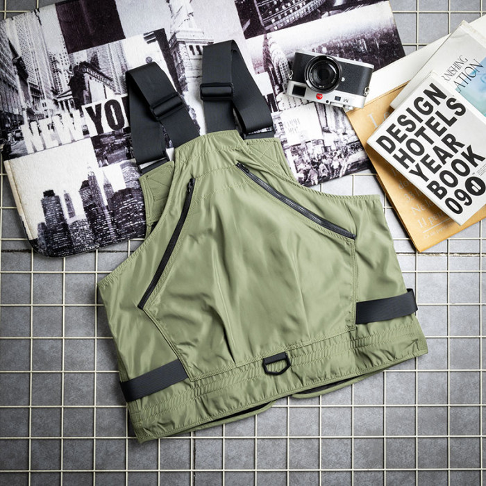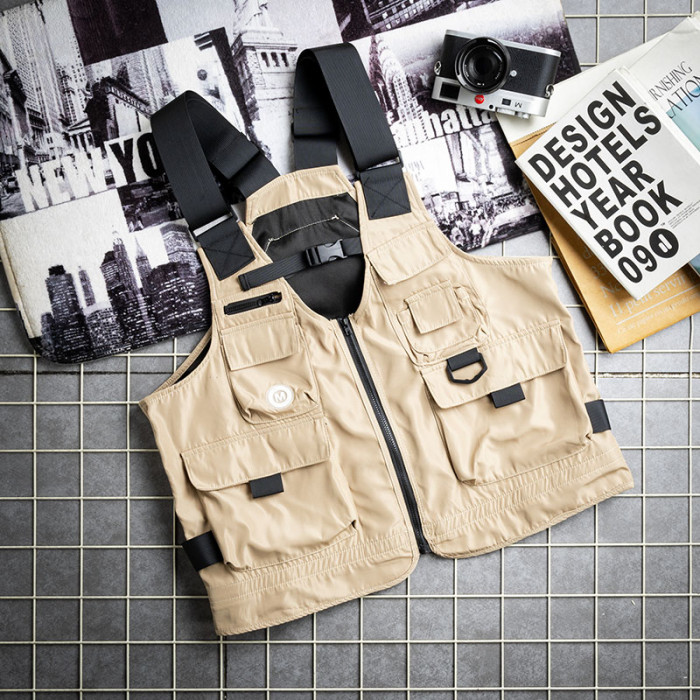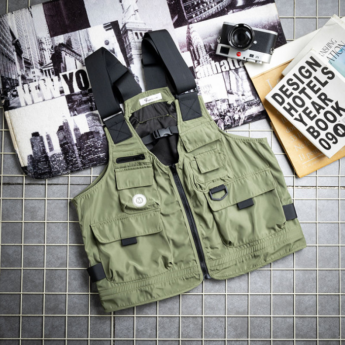 山系露營多口袋戶外工裝多口袋機能風馬甲男無袖坎肩兩用挎包外套