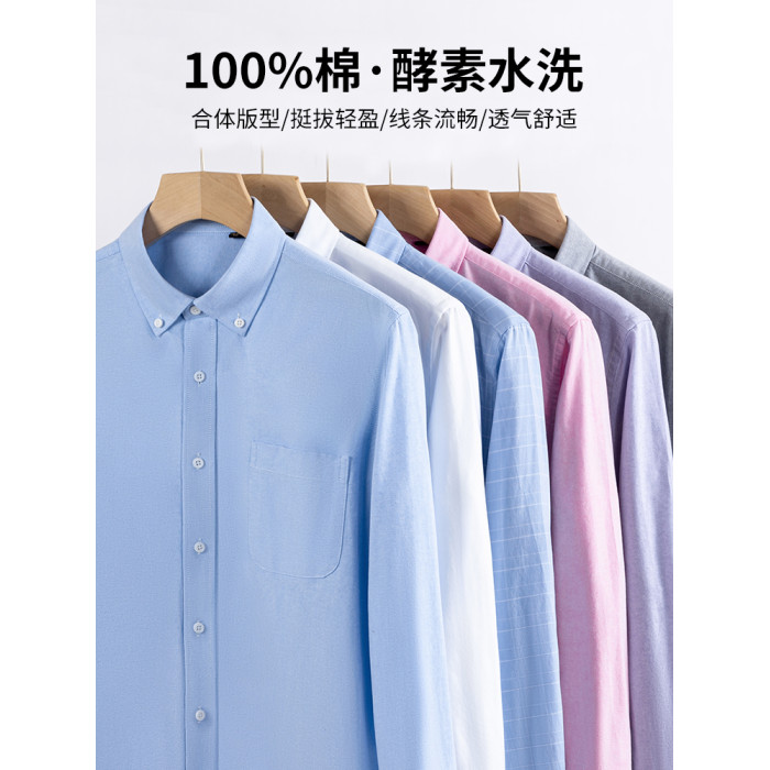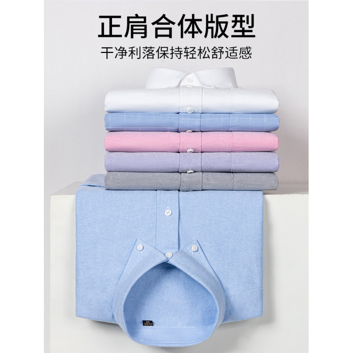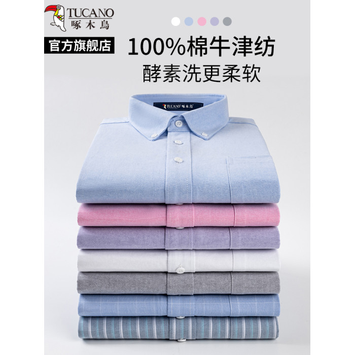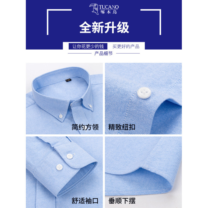 啄木鳥藍色襯衫男士長袖秋季純棉牛津紡免燙抗皺商務休閒白色襯衣