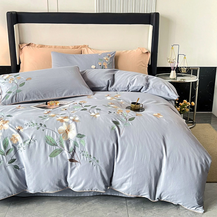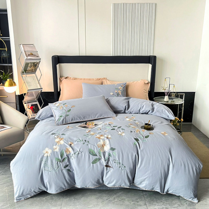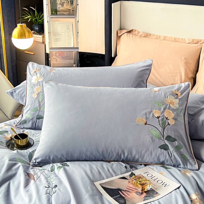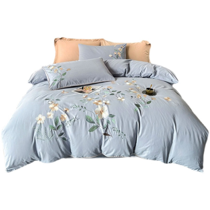 高顔值!刺綉純棉被套四件套加厚全棉斜紋雙人綉花被罩特價甩