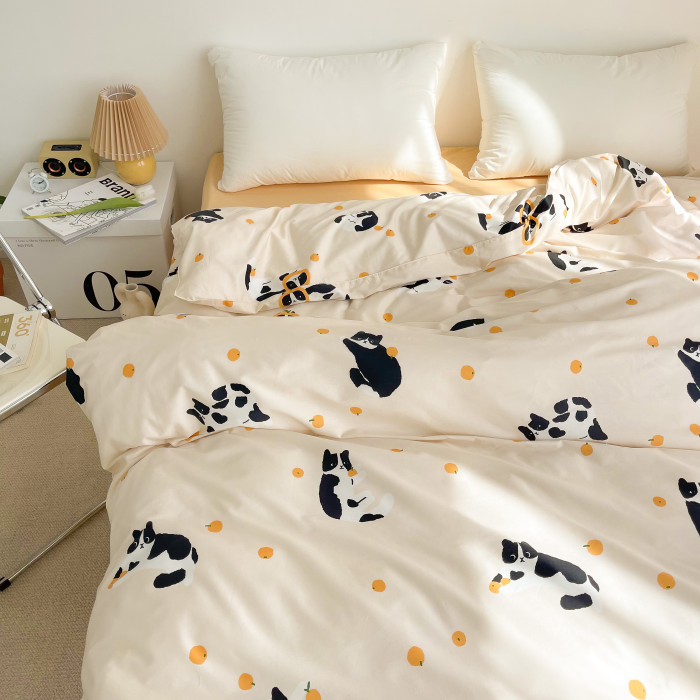 奶牛貓|插畫師原創桔子小貓可愛全棉被套單件純棉被罩兒童學生床