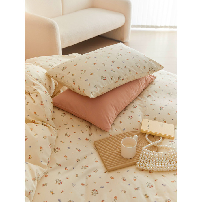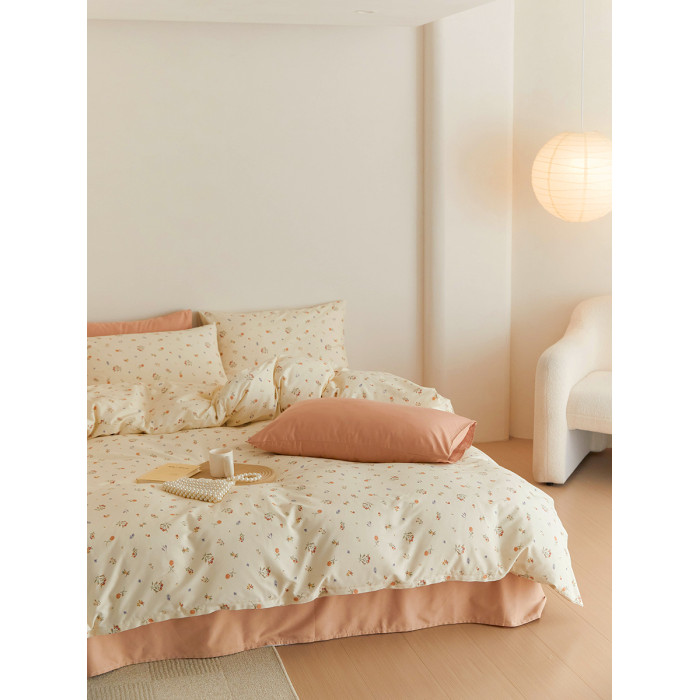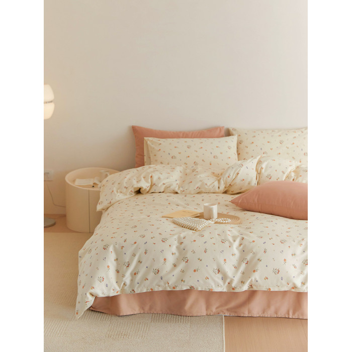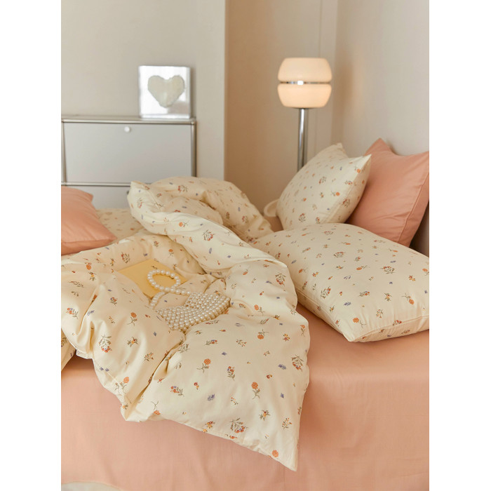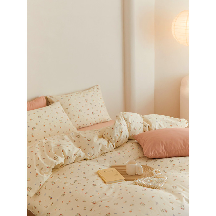 奶油色小碎花純棉被套單件全棉床上四件套被單床單雙人被罩床笠