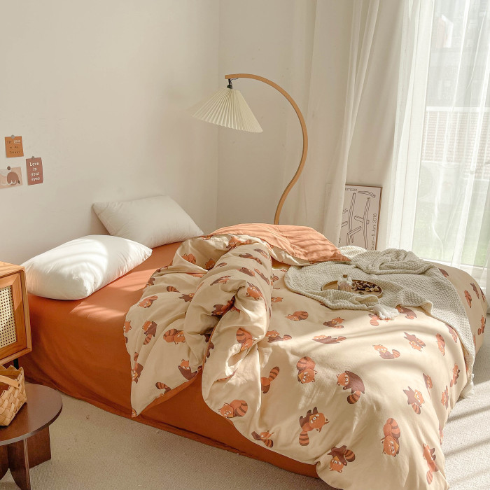 綿綿小熊貓 A類原創插畫可愛卡通動物全棉雙層紗被套單件單雙人