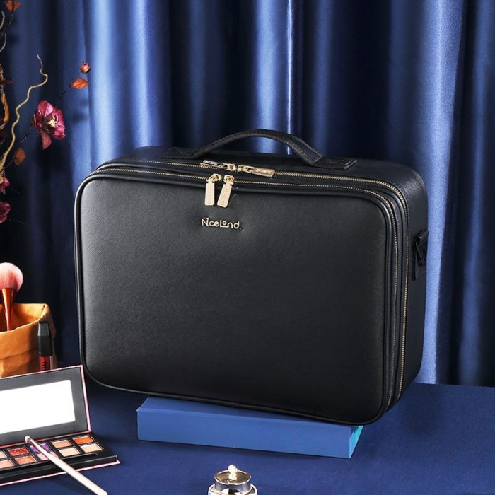 新款皮質化妝包女可攜式大容量專業化妝師跟妝師收納包紋綉工具箱
