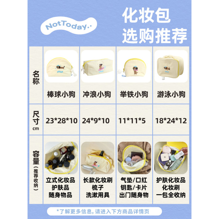 NotToday 棒球小狗貝殼包 化妝包可攜式大容量旅行收納袋洗漱包