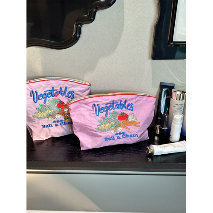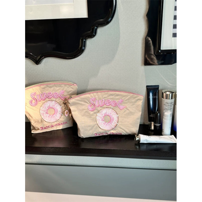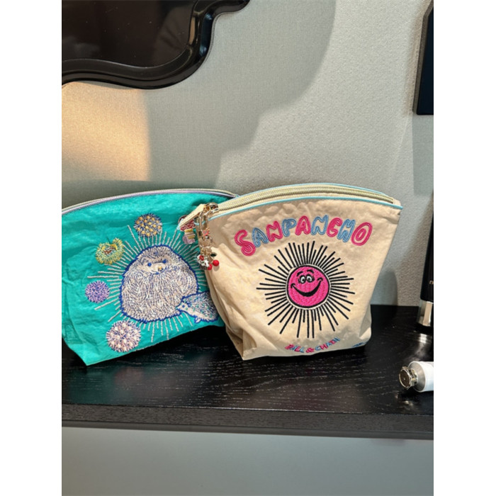 日系小衆設計化妝包新款ball chain袋防水尼龍刺綉化妝小包