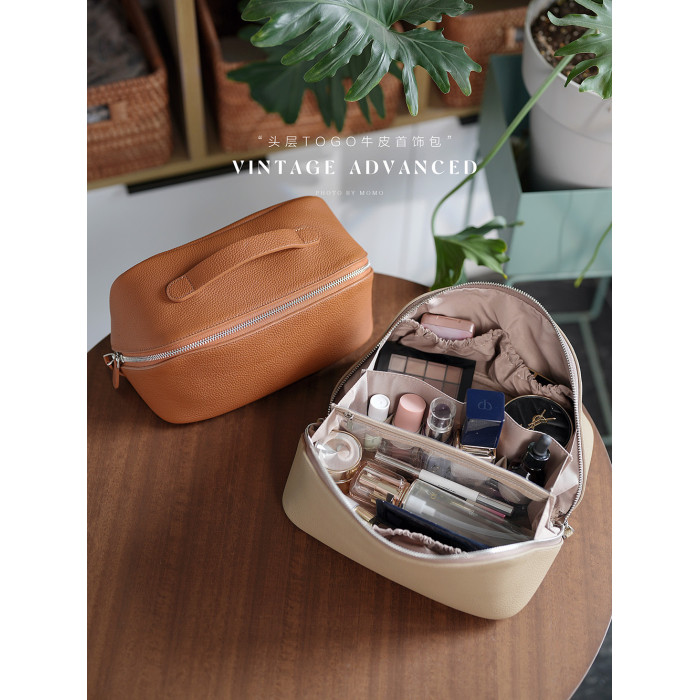 真皮大容量多隔層可攜式ins高級感網紅旅行洗漱手提收納袋化妝包大