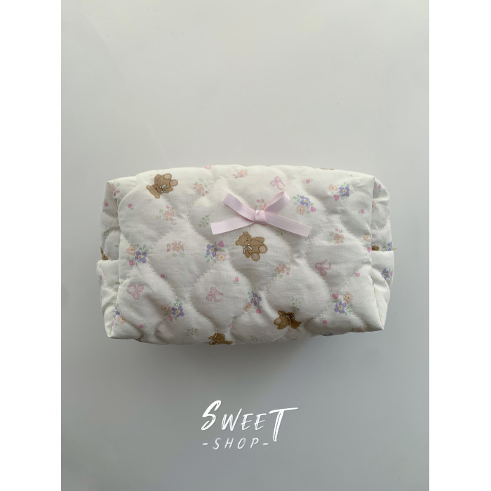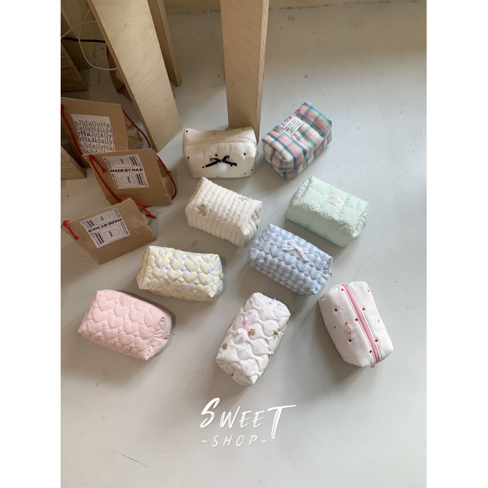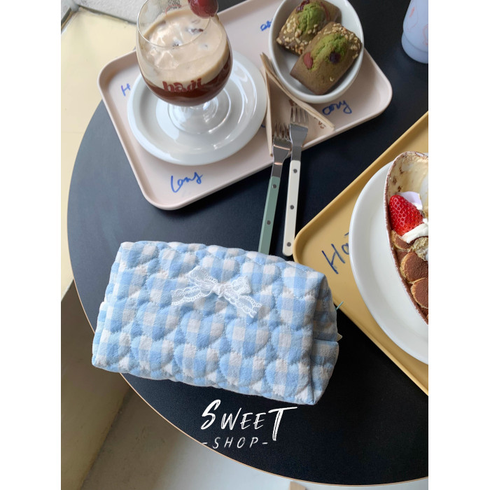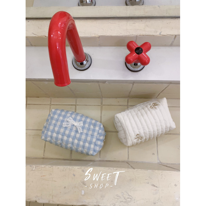 韓國進口絎縫格子ins風化妝包外出旅行收納包桌面整理袋筆袋