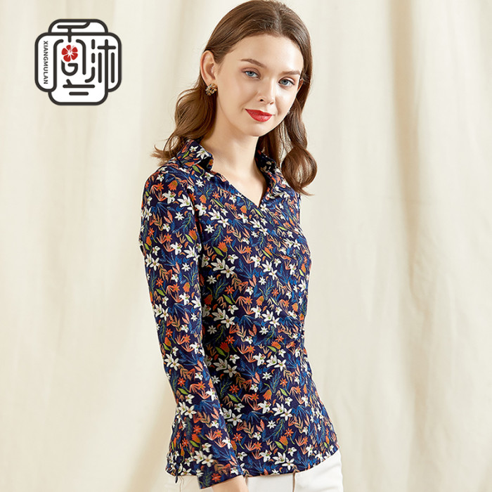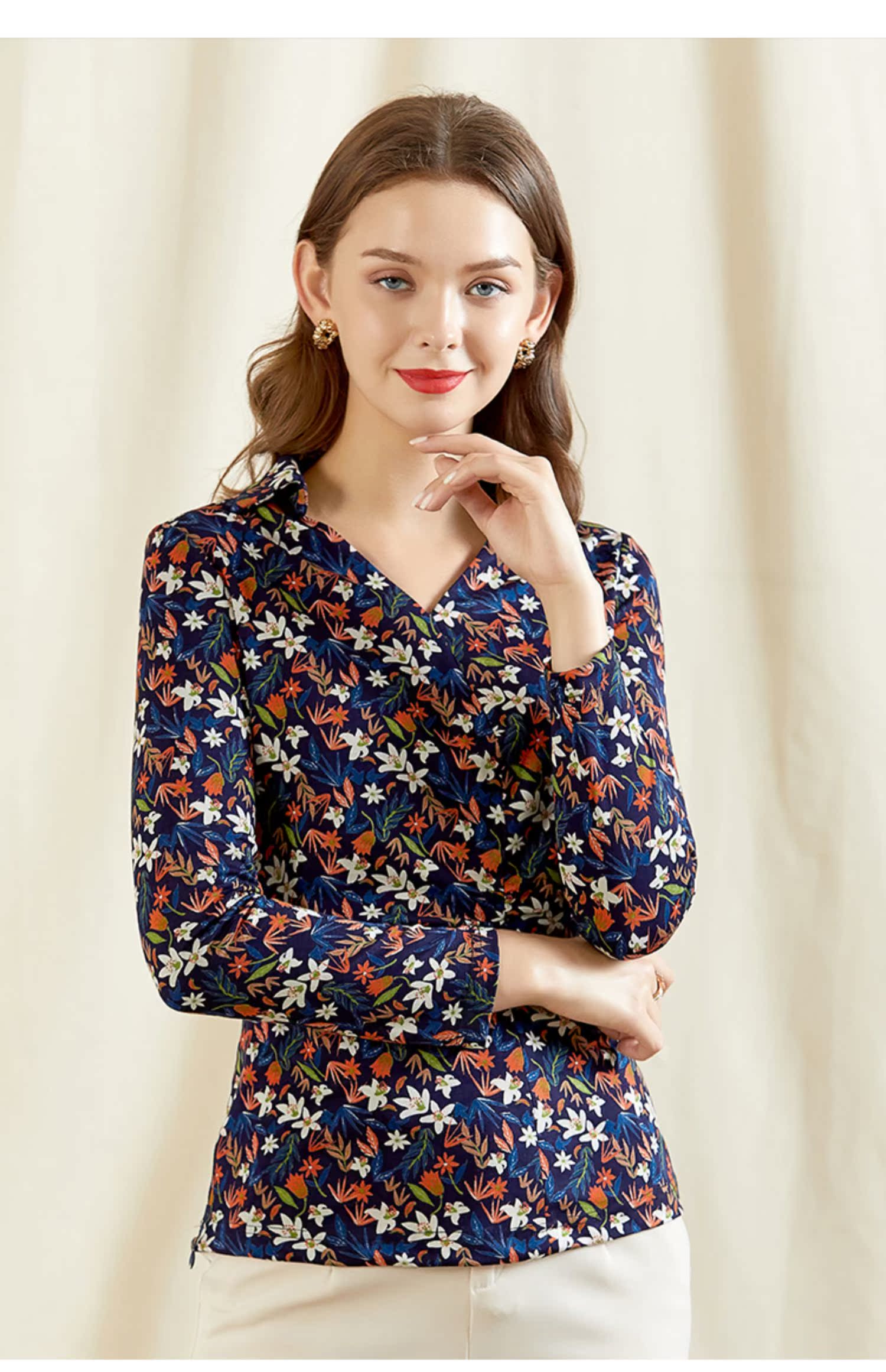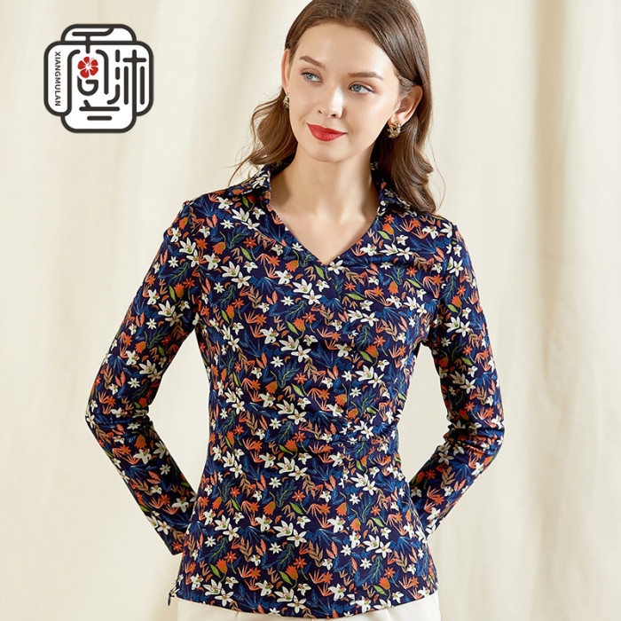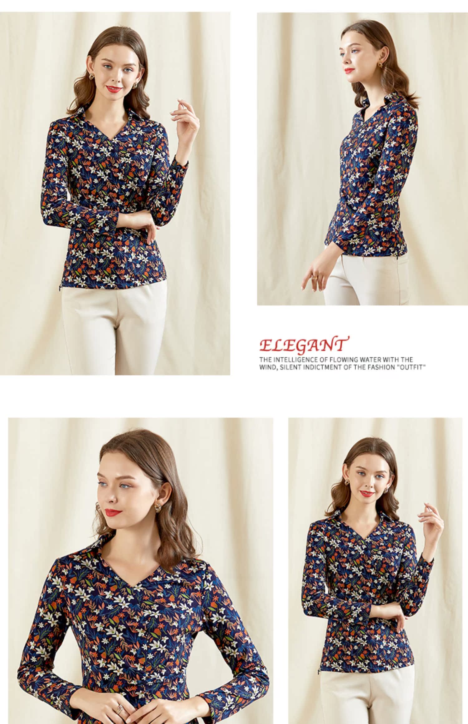香沐蘭2025春秋裝新款彈力媽媽襯衫女長袖中老年洋氣上衣打底衫