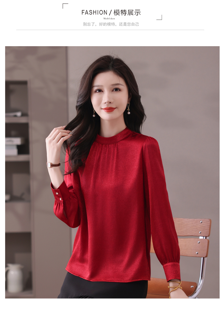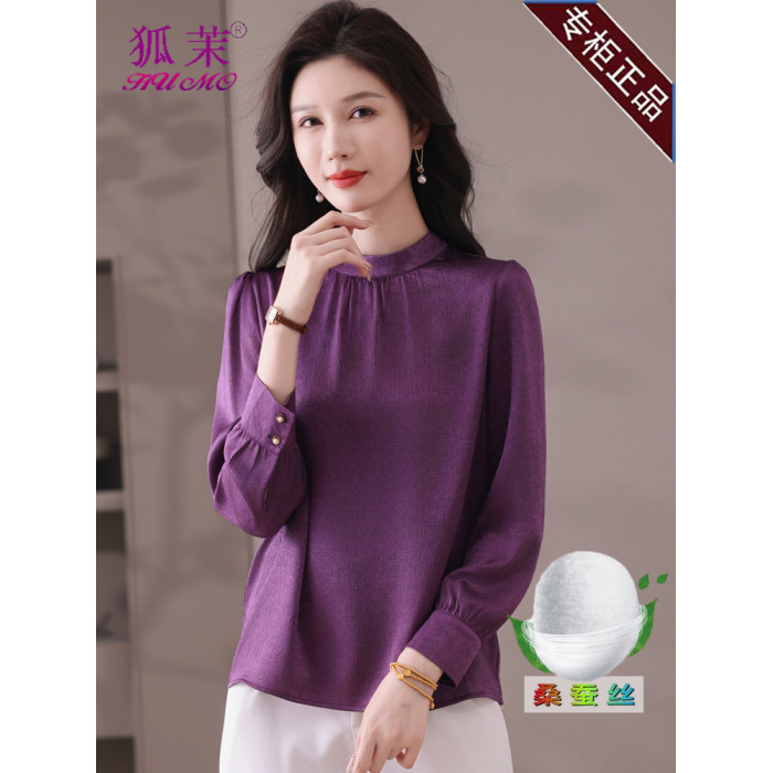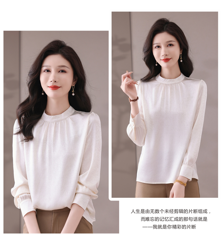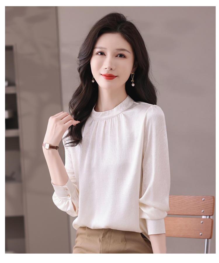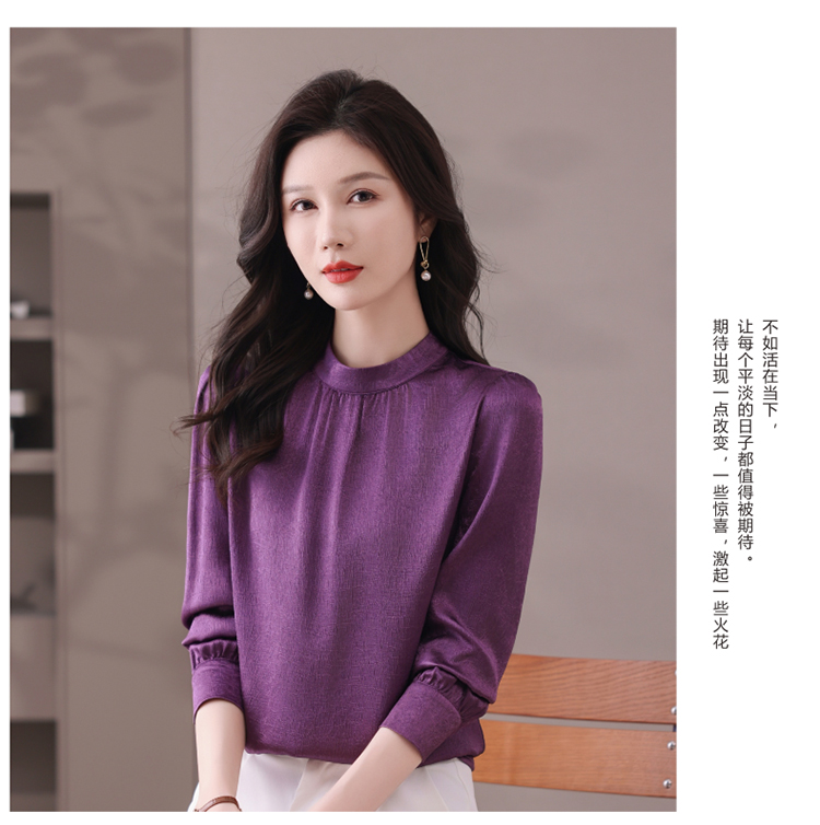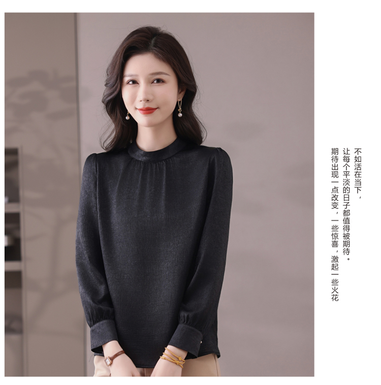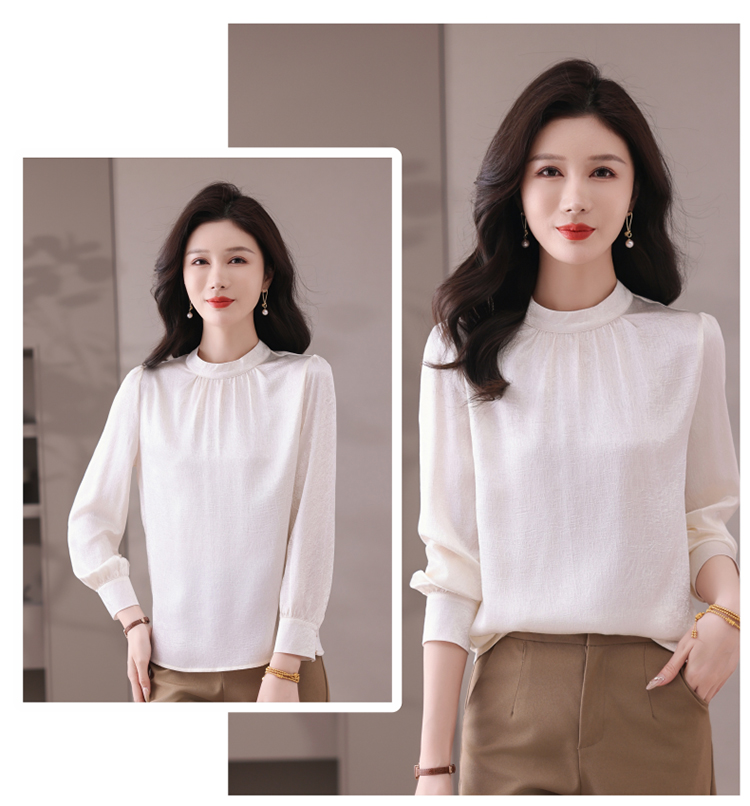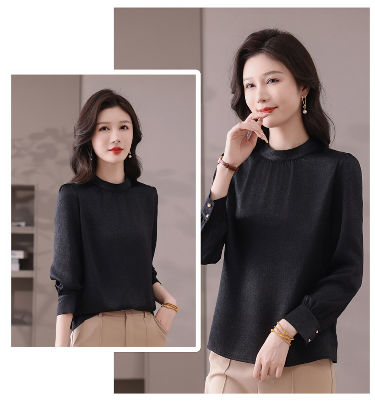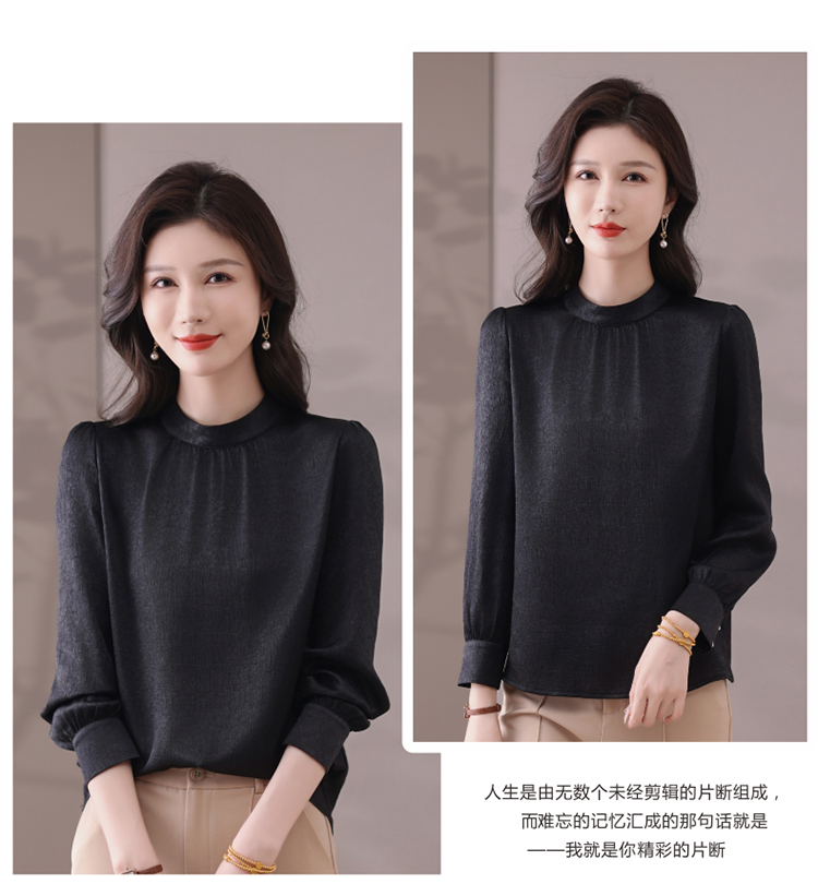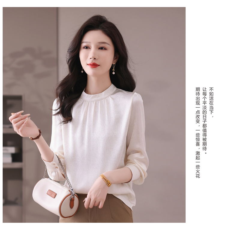 OL風真絲素縐緞面桑蠶絲簡約輕奢長袖立領襯衫女通勤春夏裝打底衫