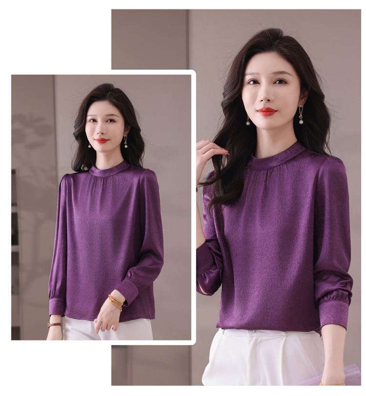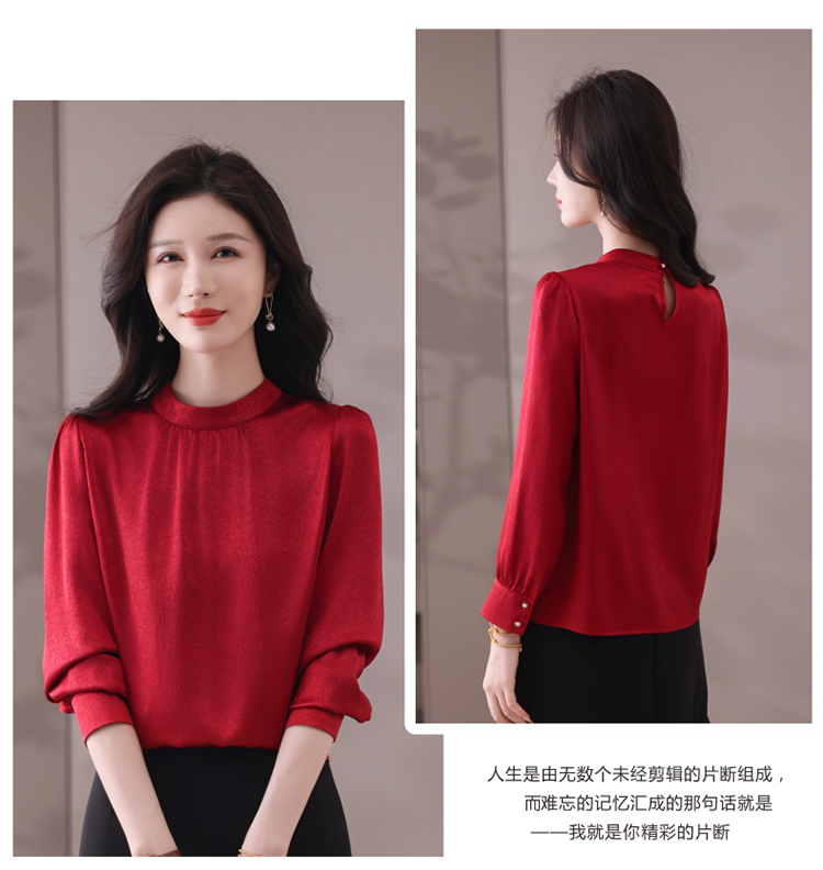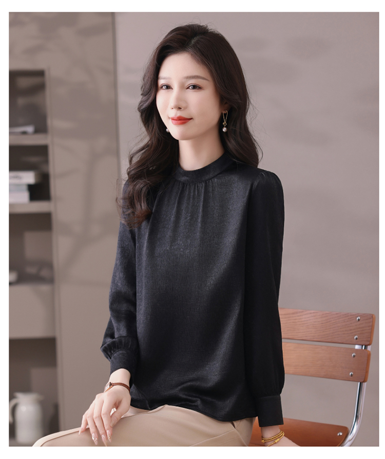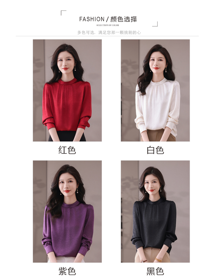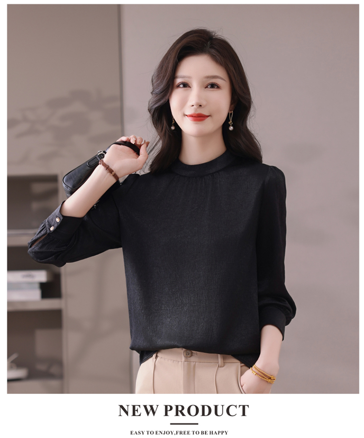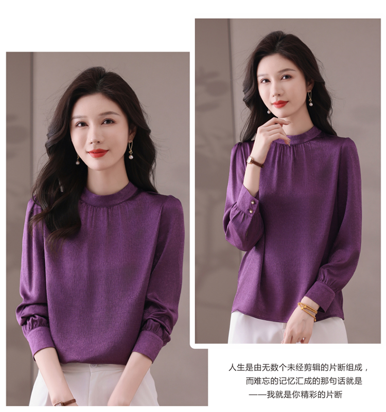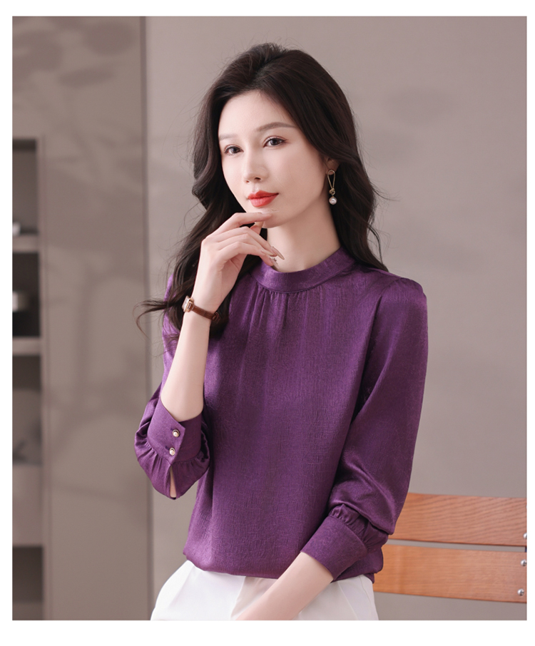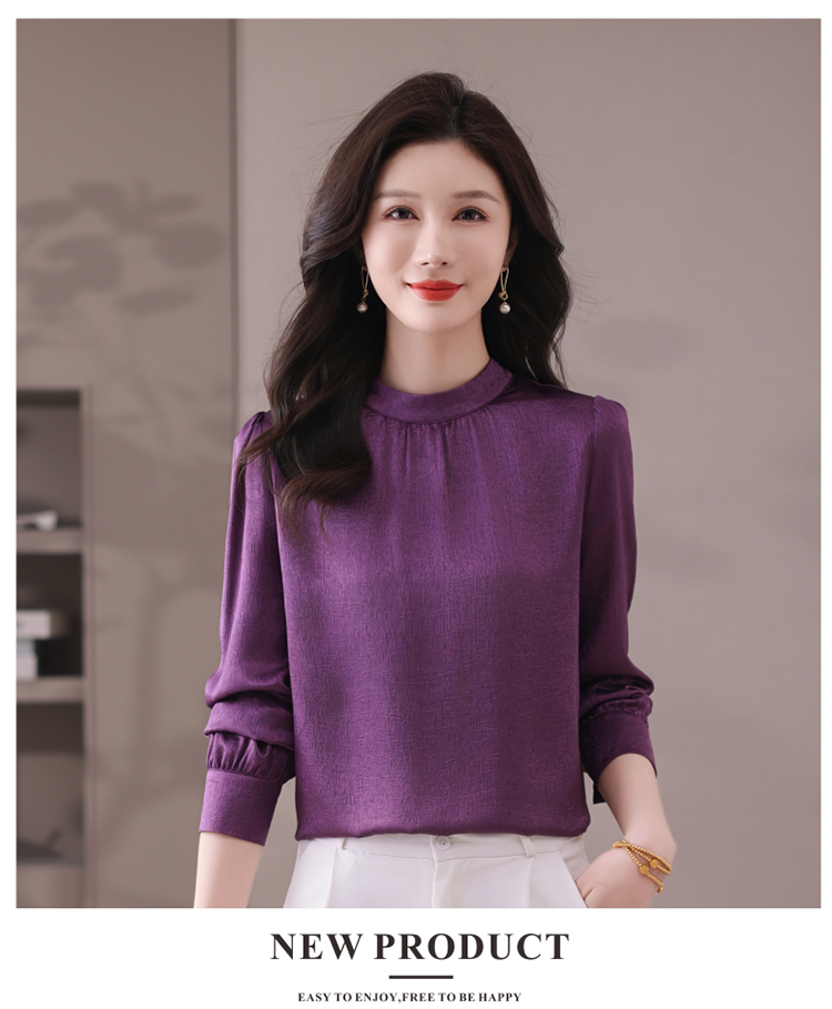 OL風真絲素縐緞面桑蠶絲簡約輕奢長袖立領襯衫女通勤春夏裝打底衫