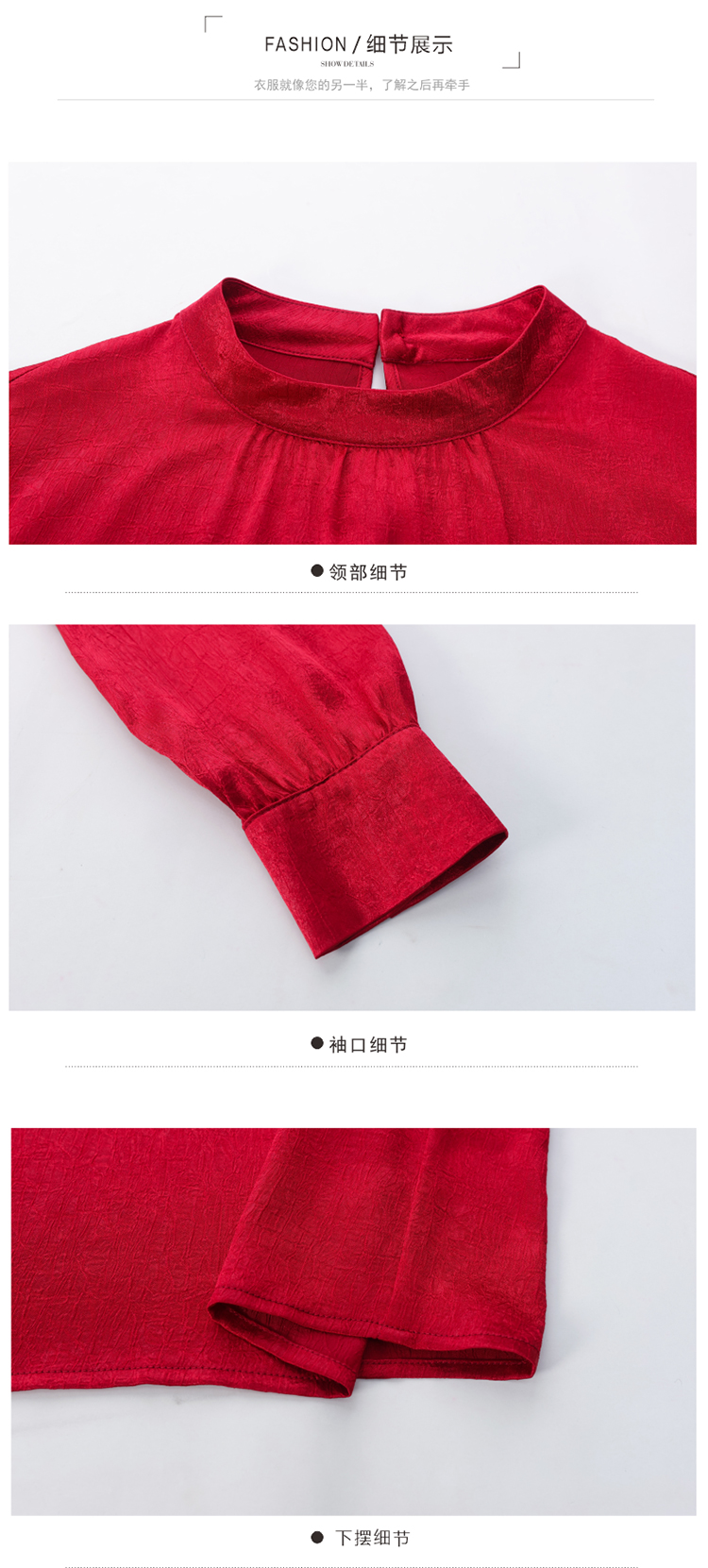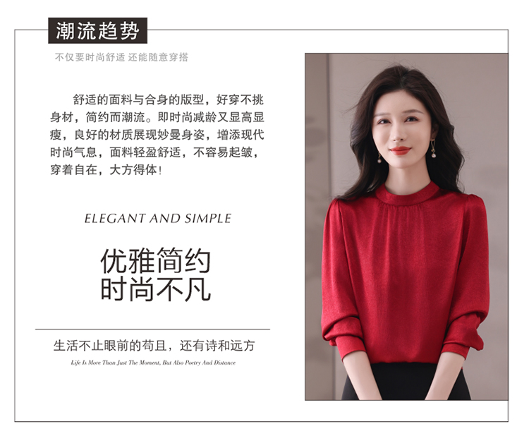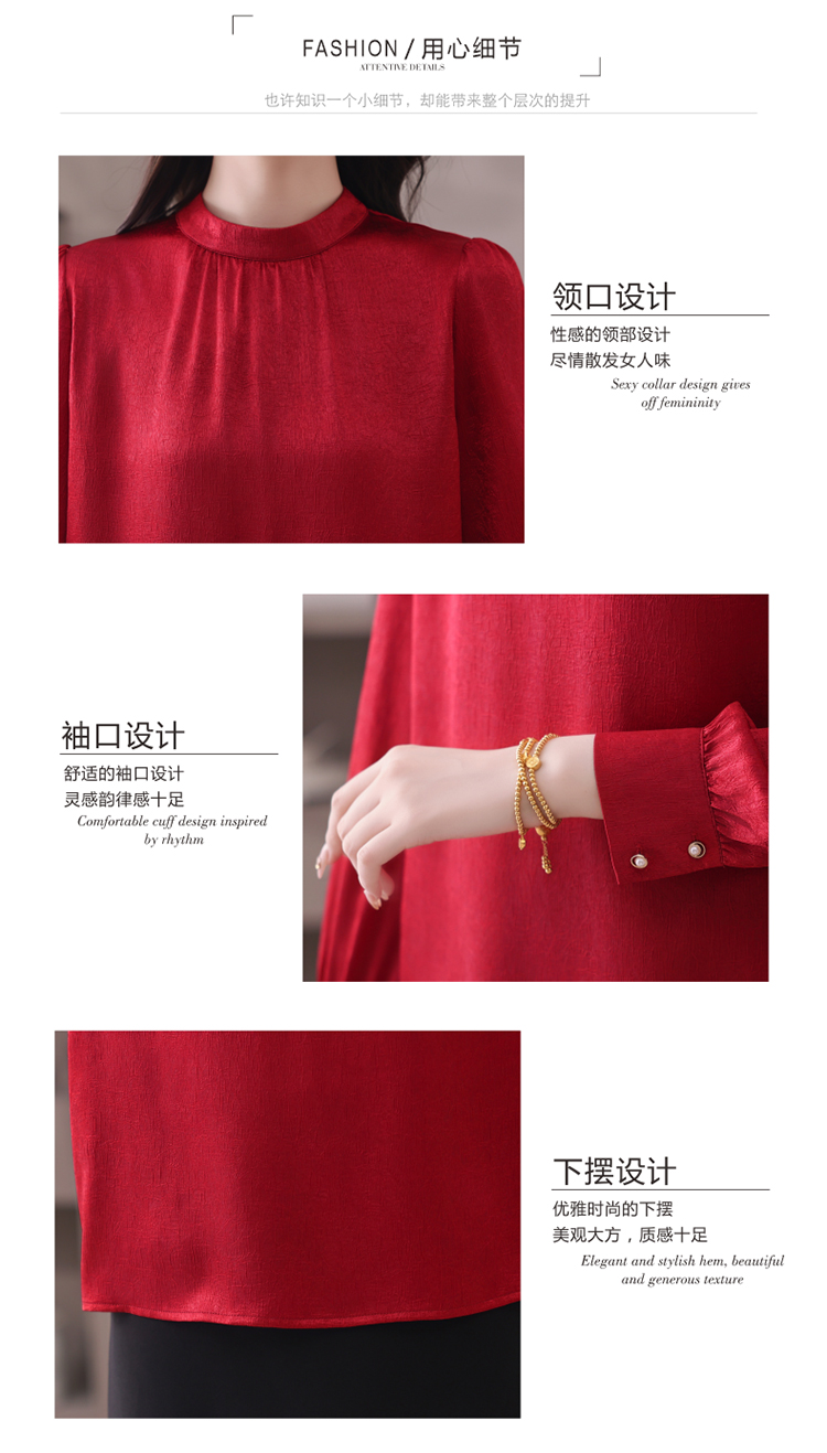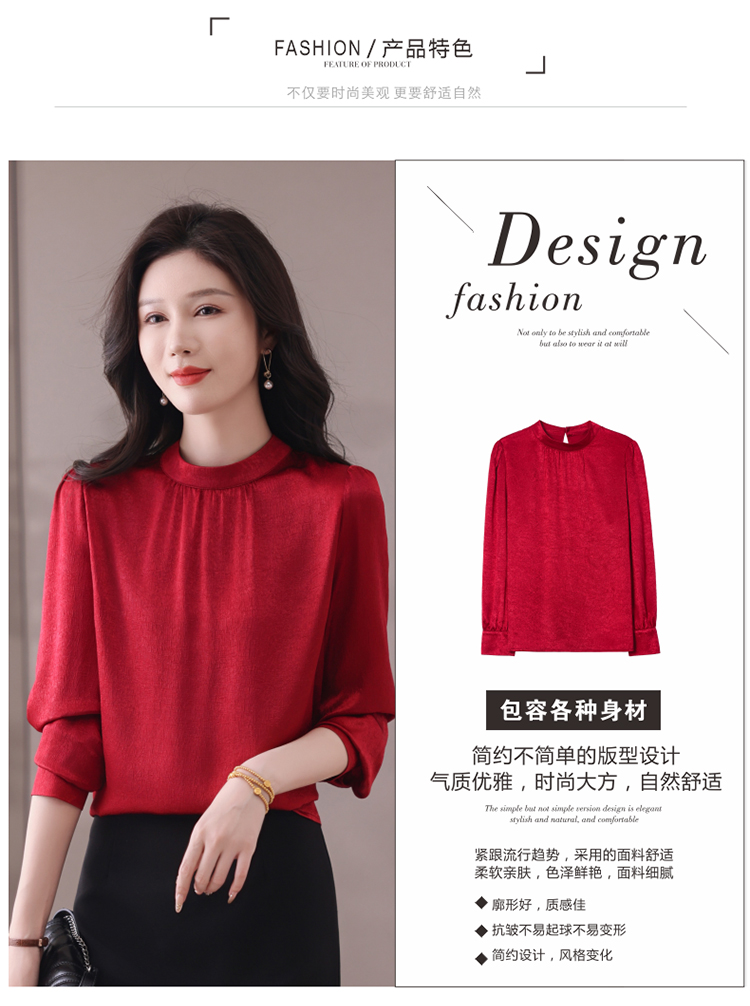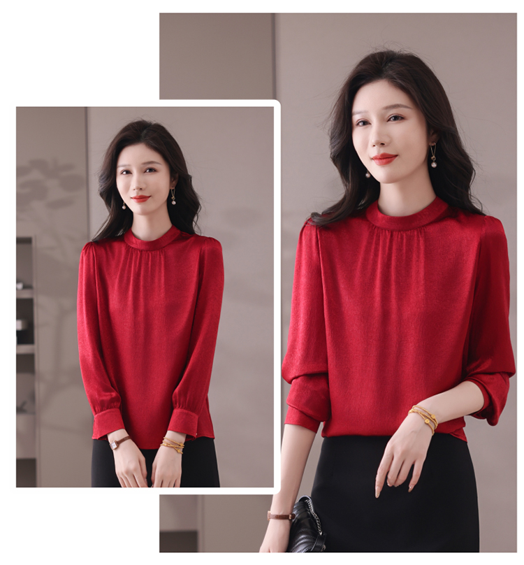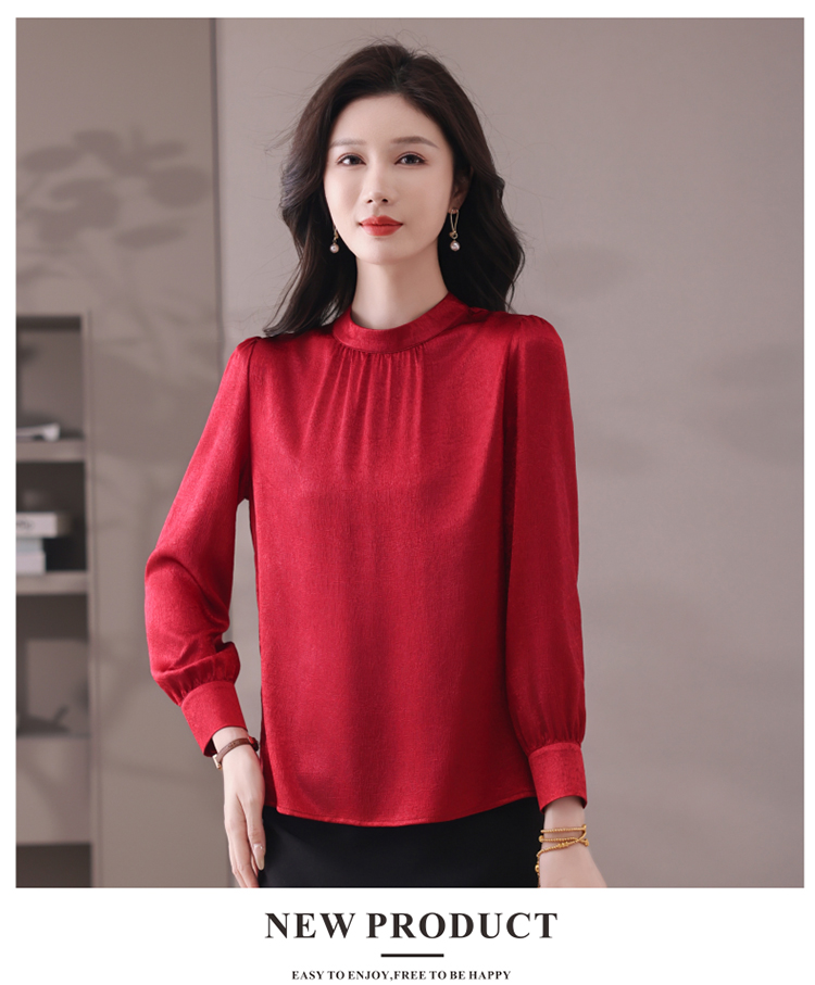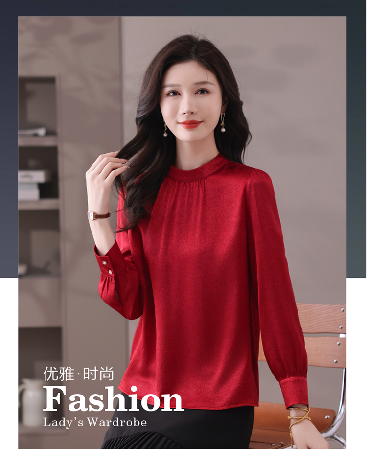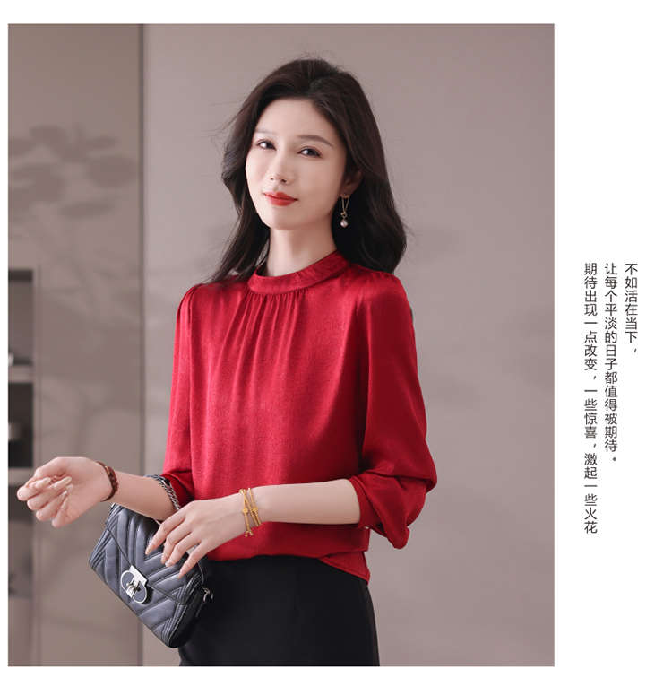 OL風真絲素縐緞面桑蠶絲簡約輕奢長袖立領襯衫女通勤春夏裝打底衫