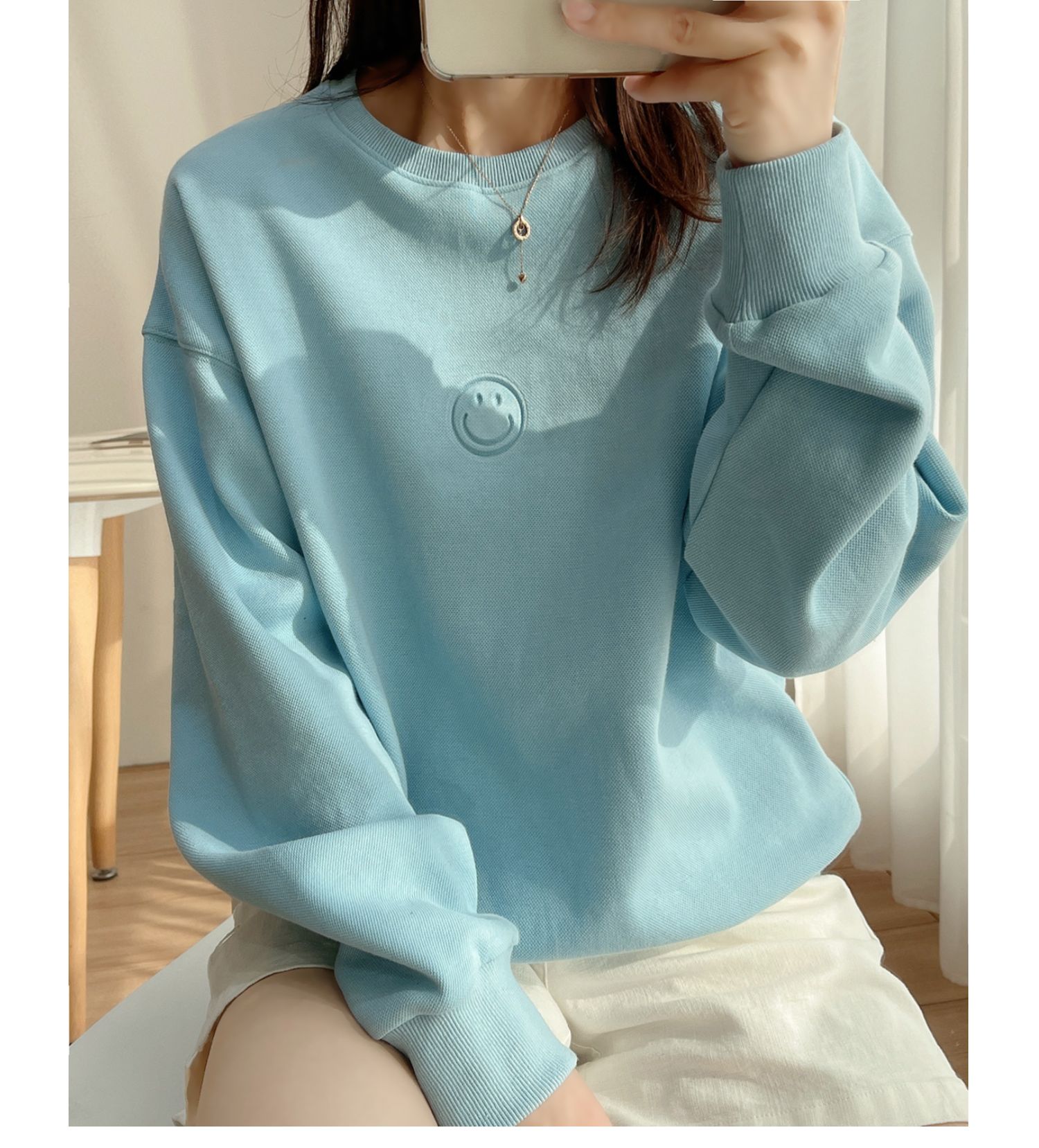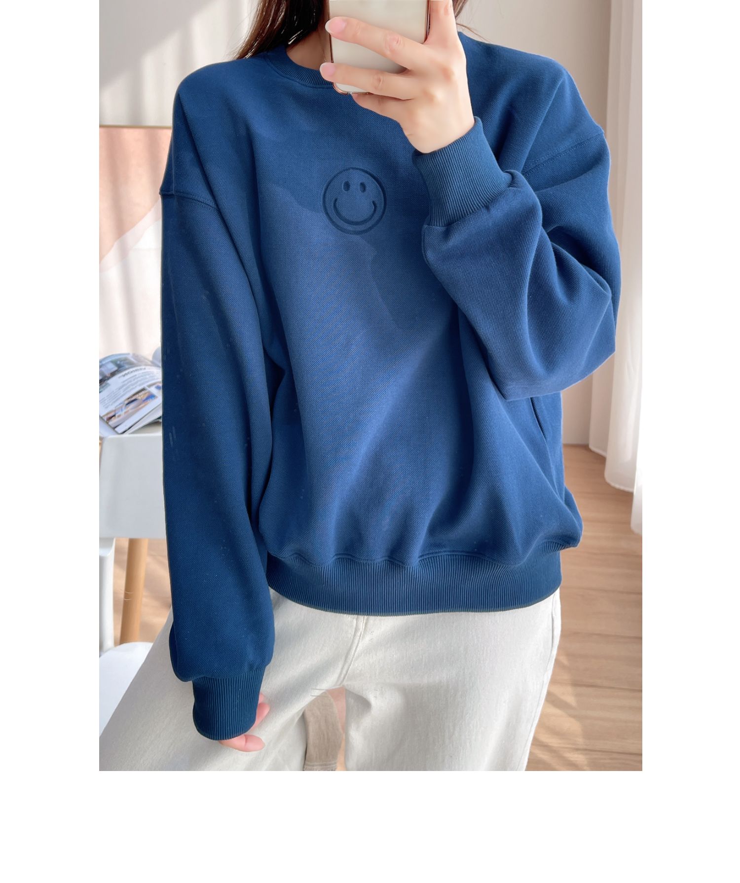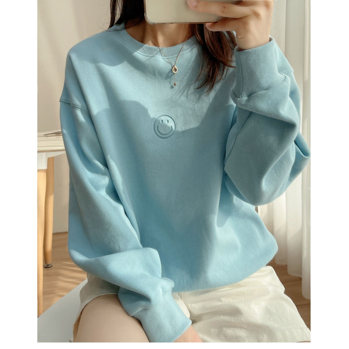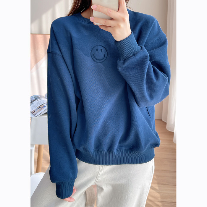25072藍色燙印笑臉衛衣