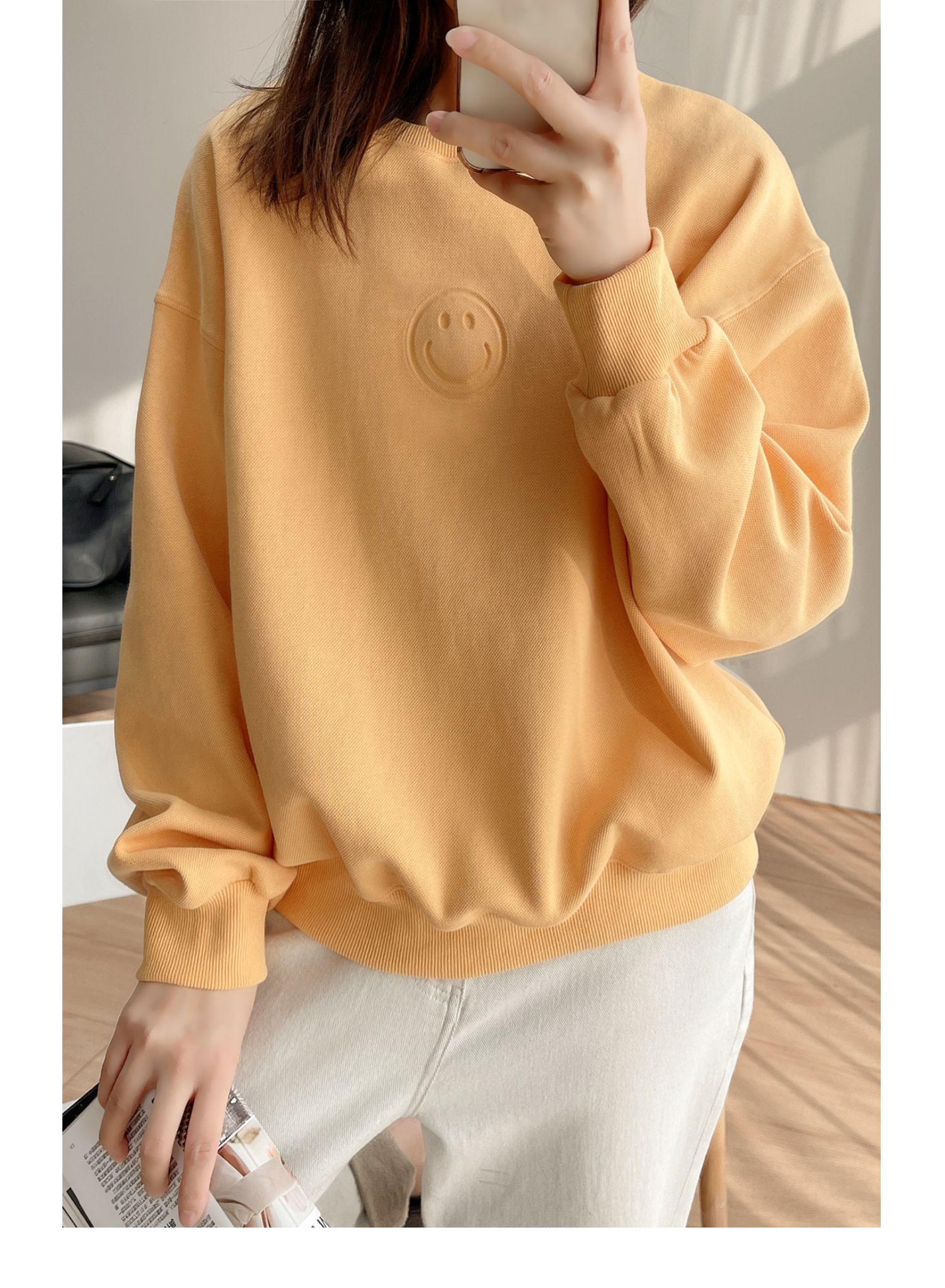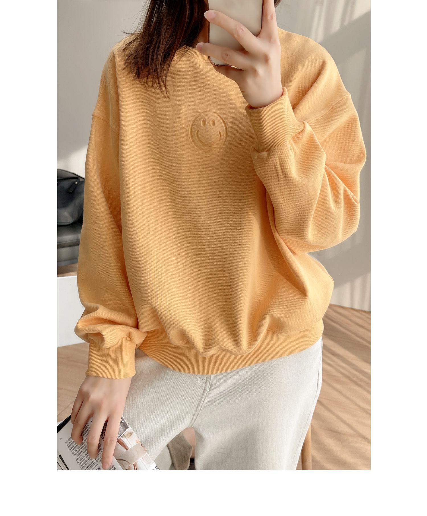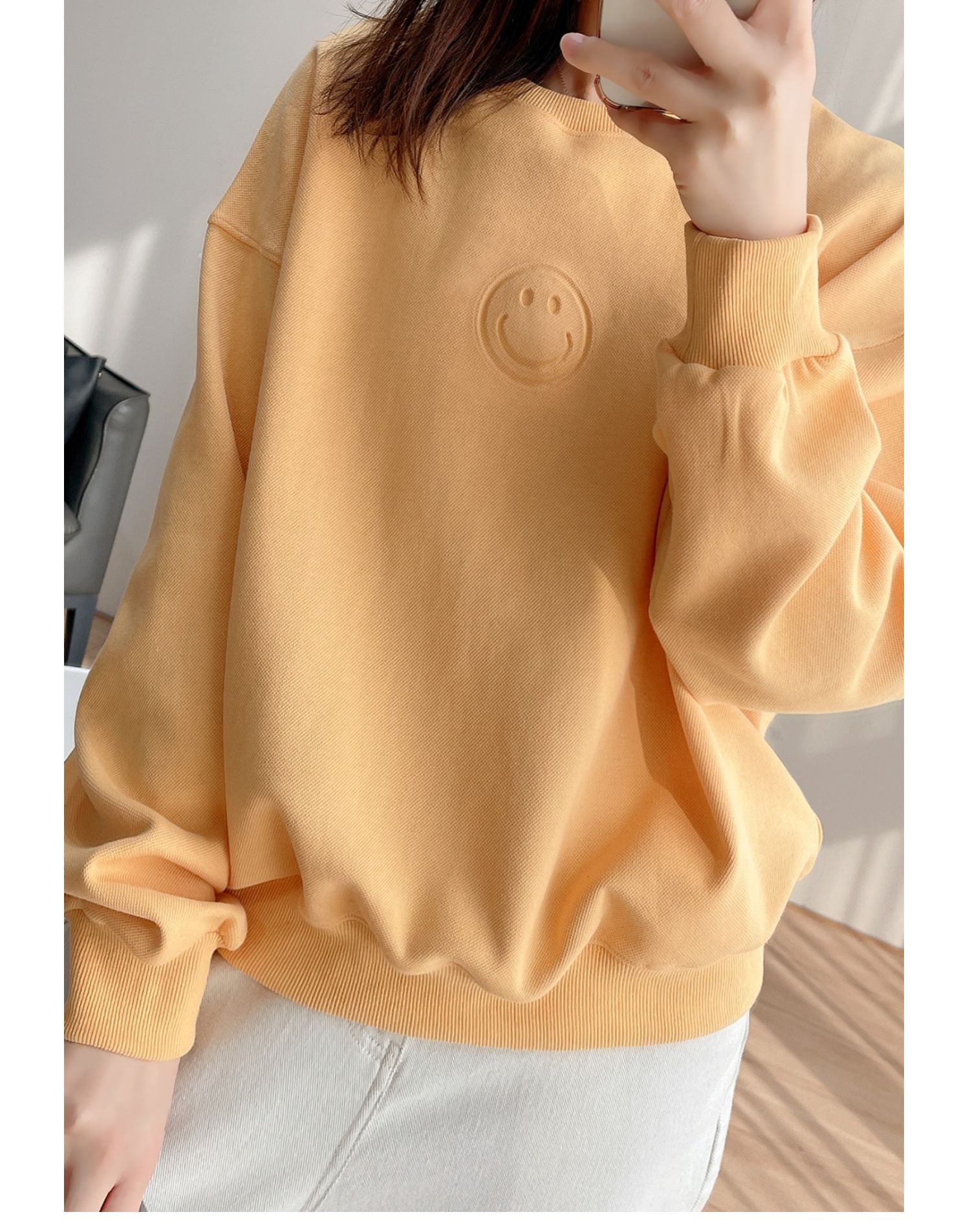 25072黃色燙印笑臉衛衣