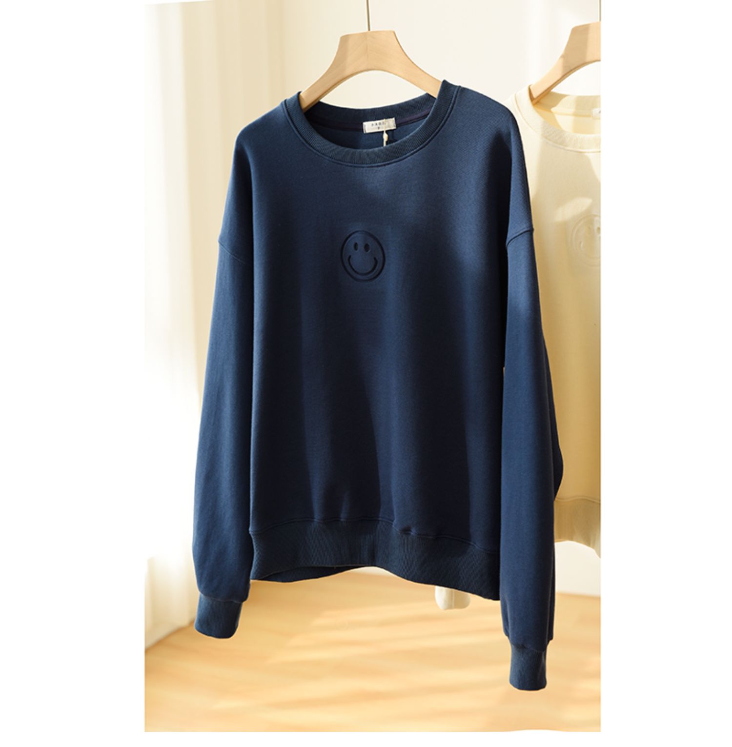 25072藏青燙印笑臉衛衣