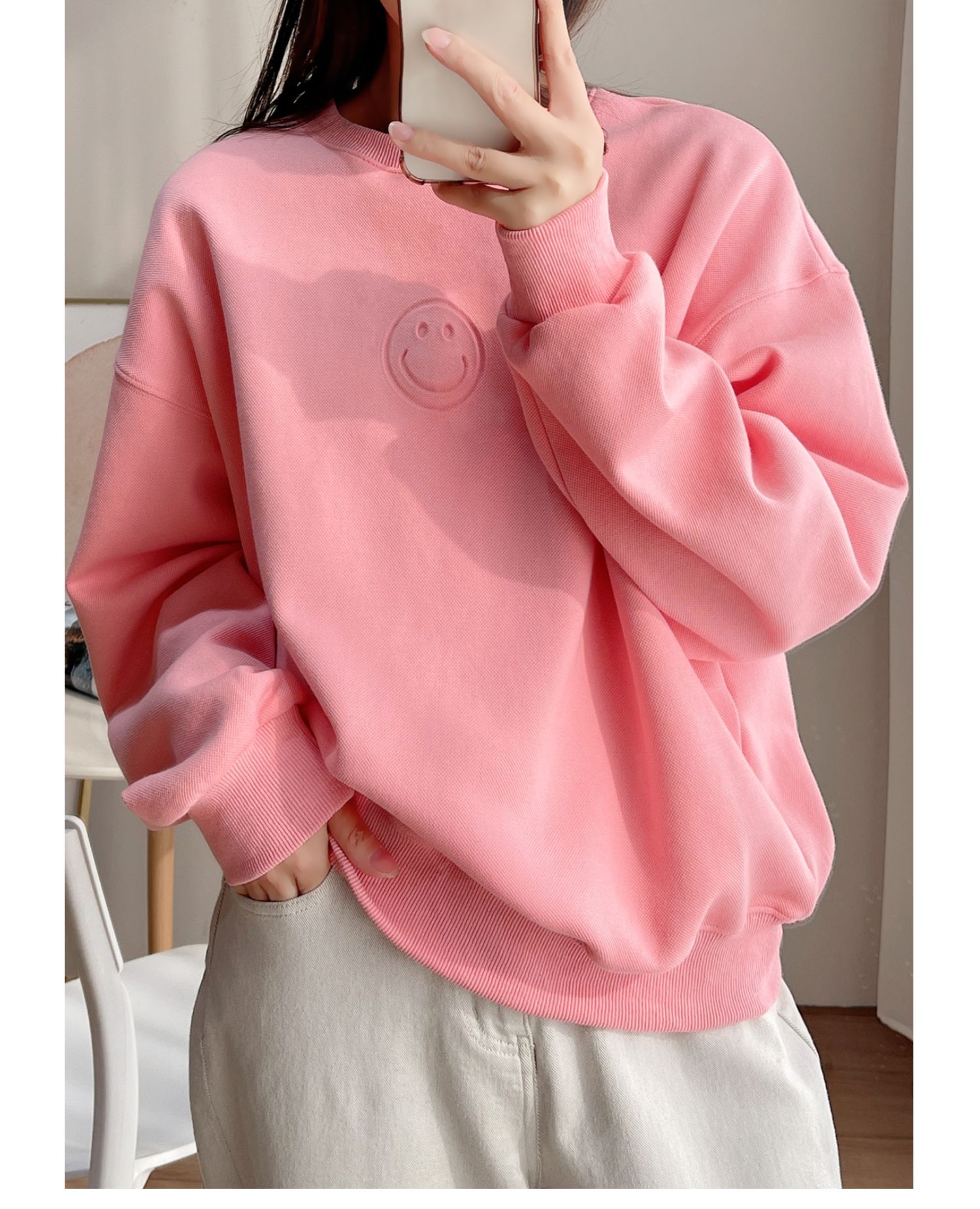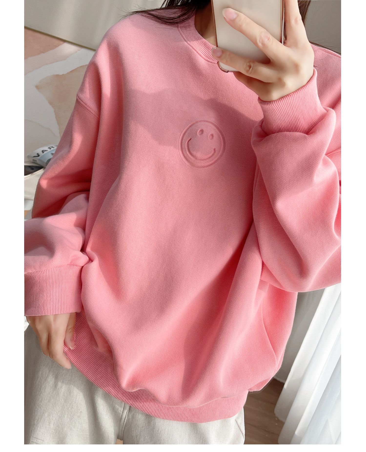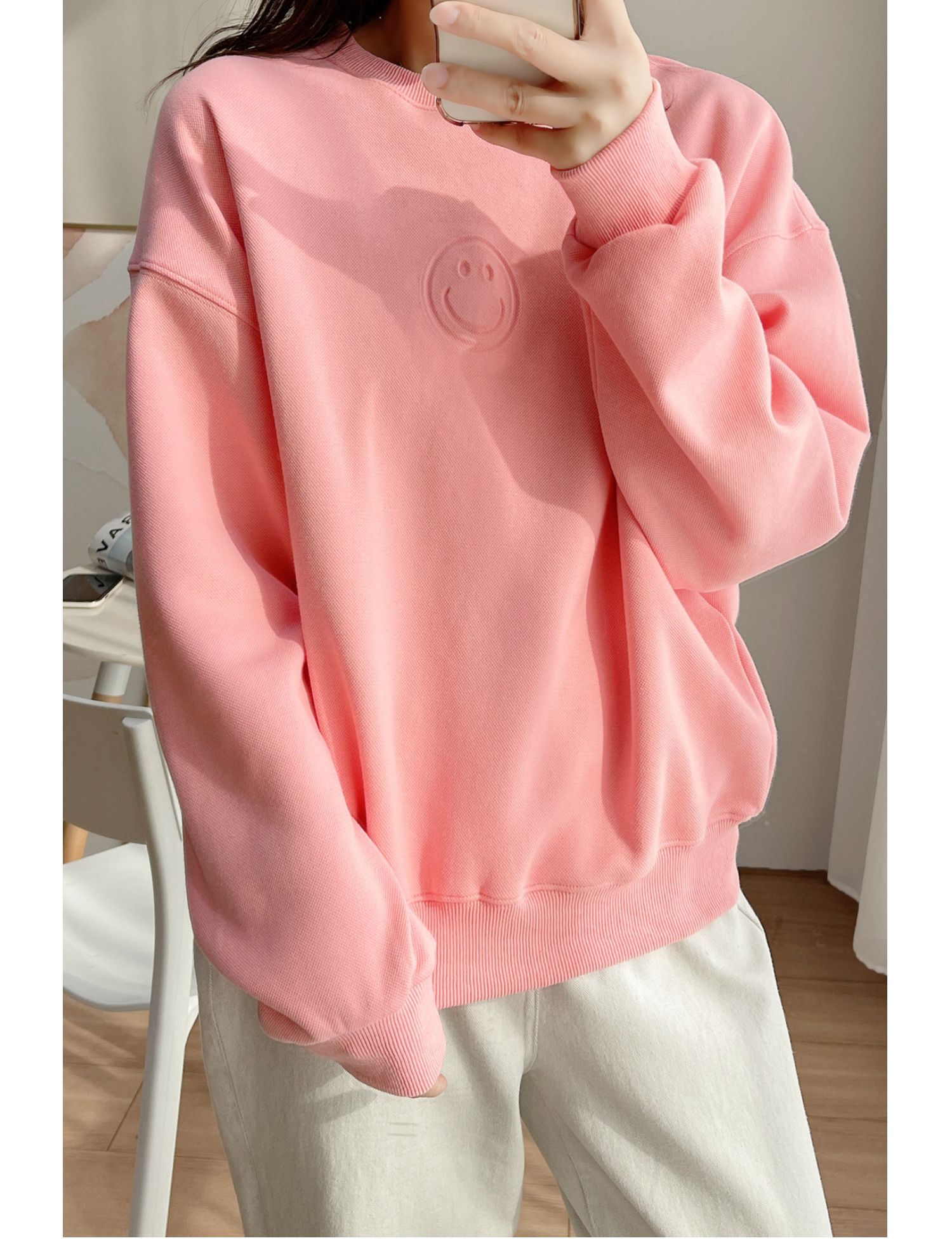 25072粉色燙印笑臉衛衣