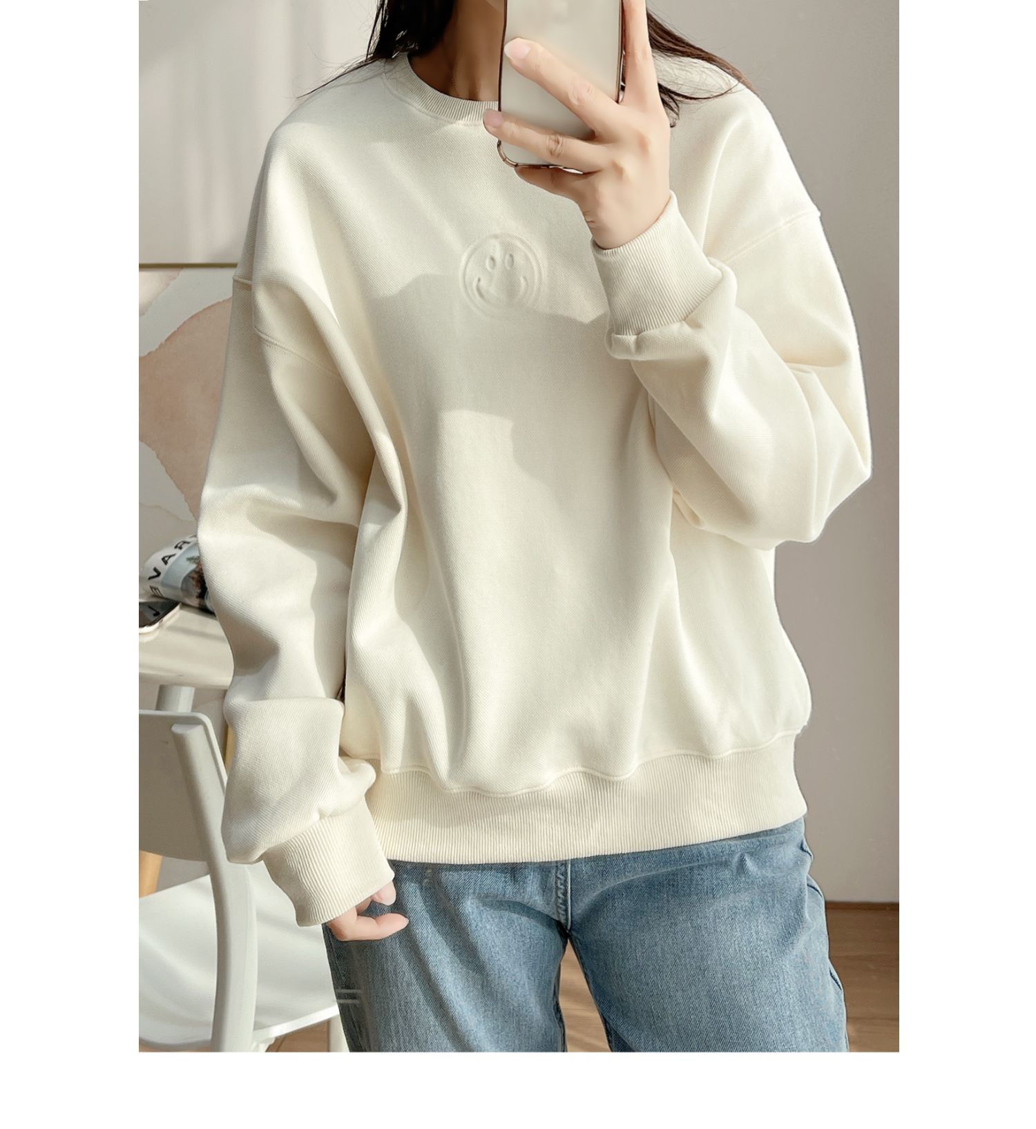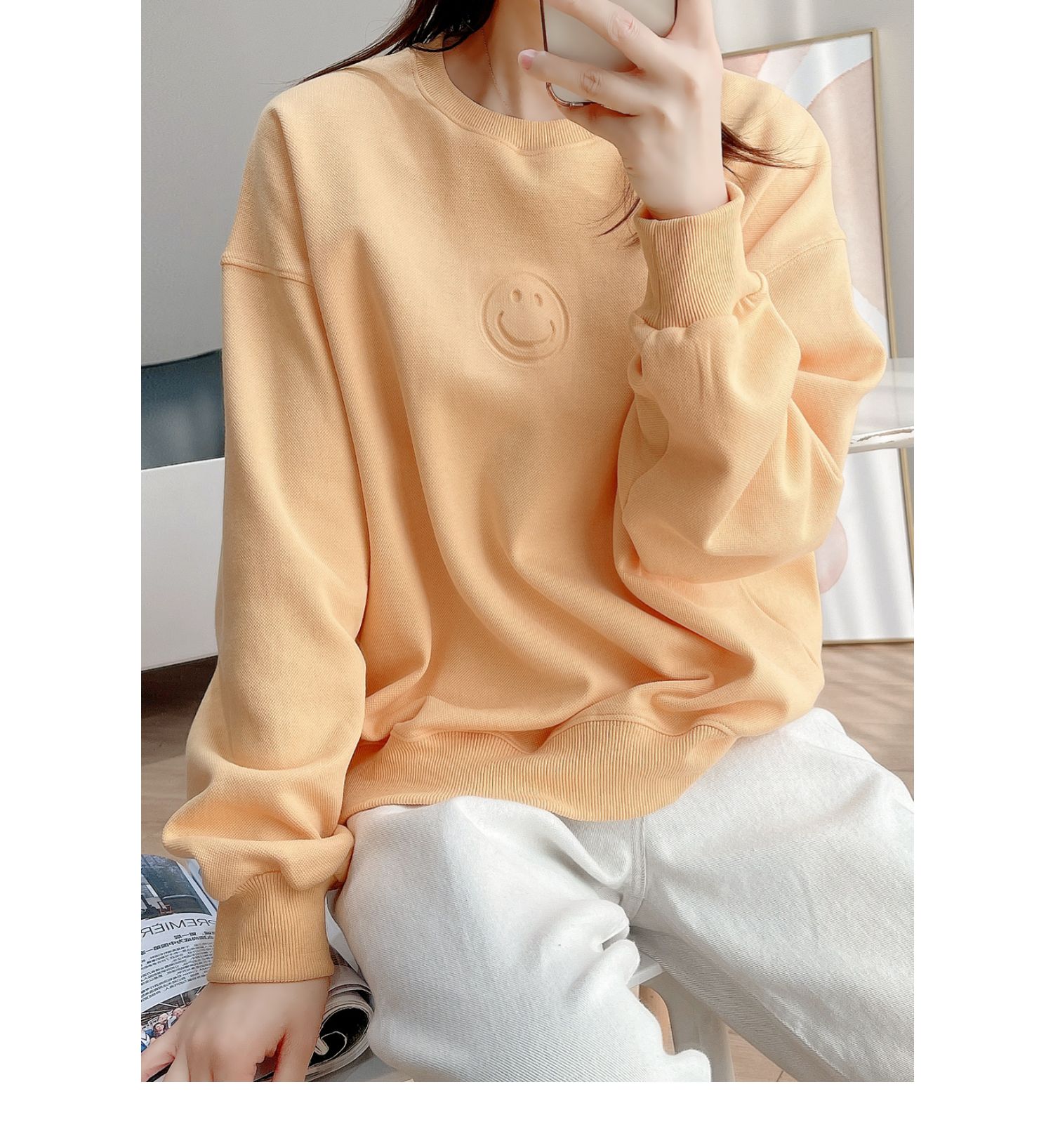 25072米色燙印笑臉衛衣