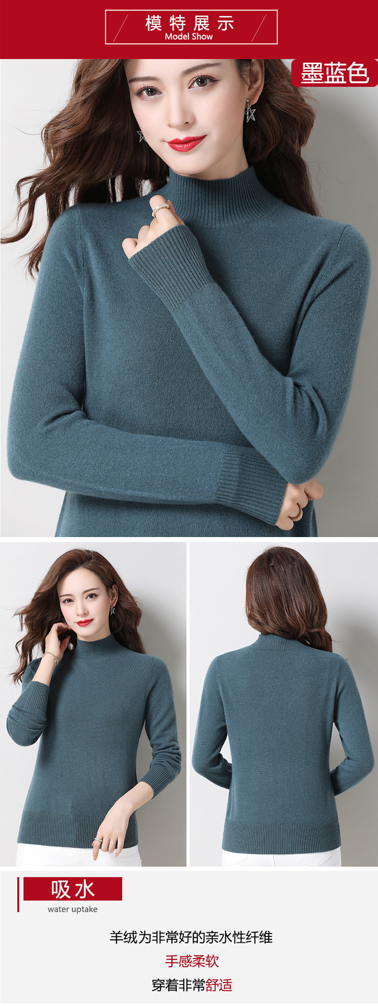 半高領海藻藍