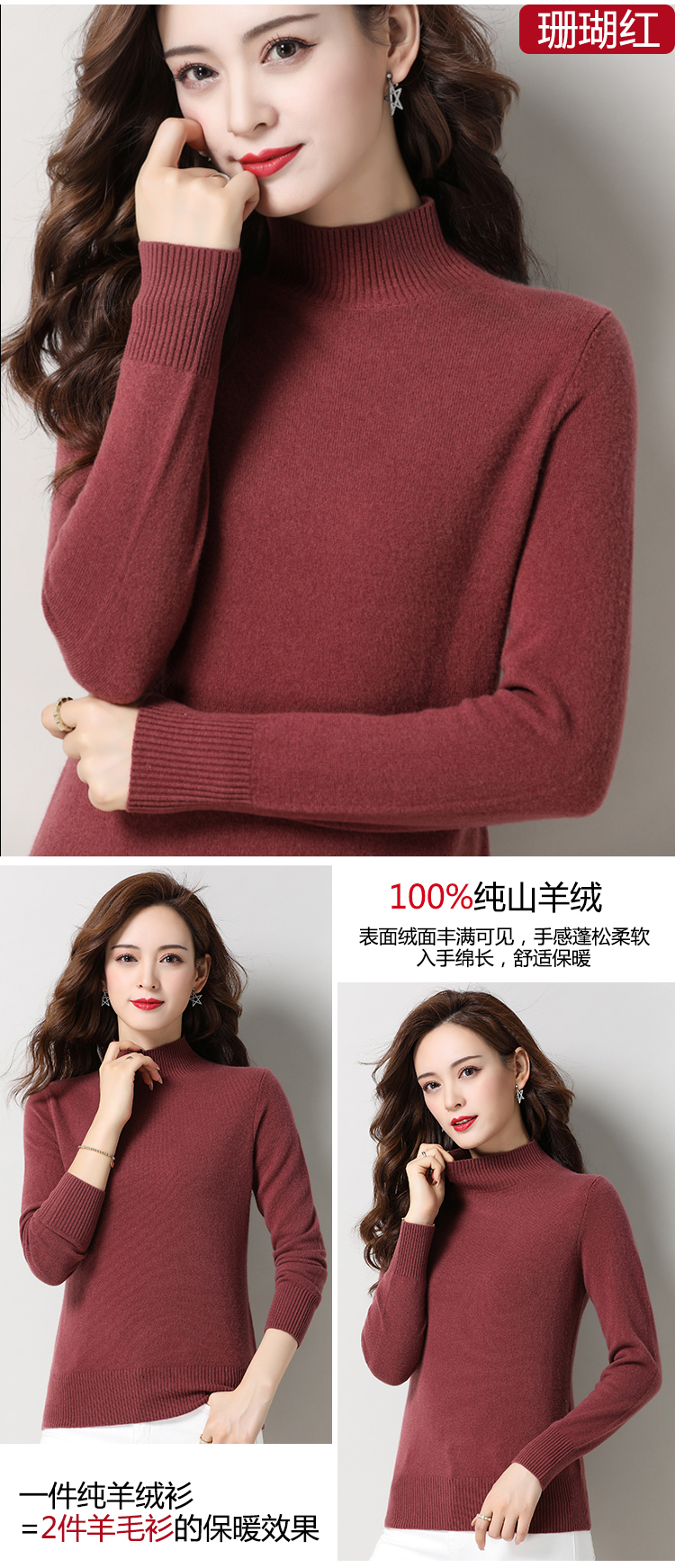 半高領珊瑚紅