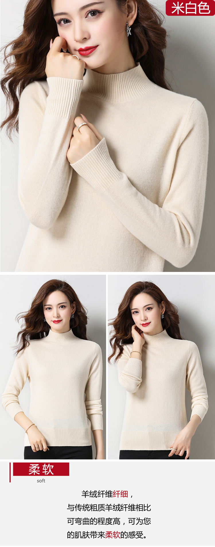 半高領米白色