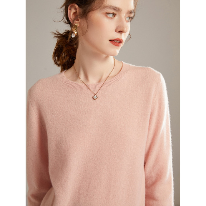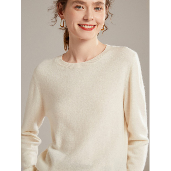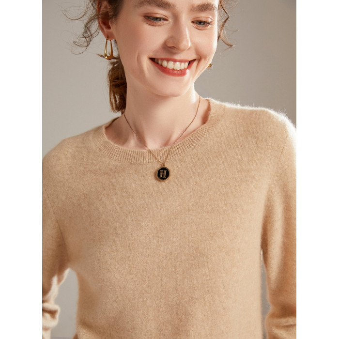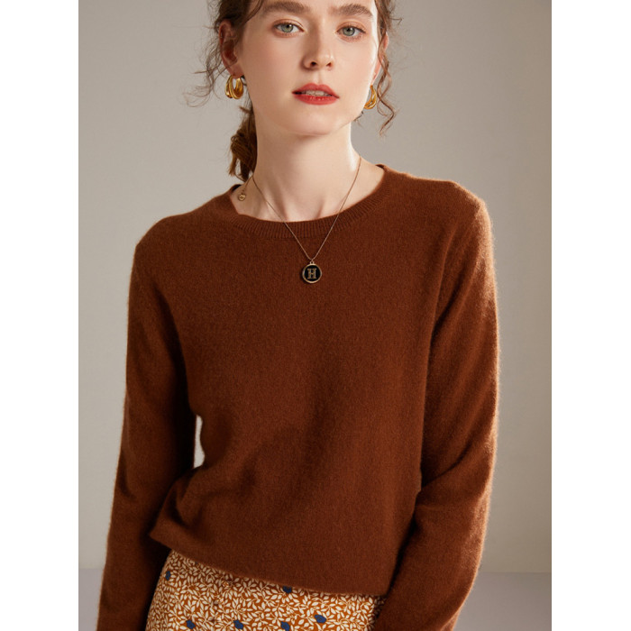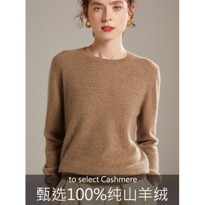 經典~100純山羊絨衫女圓領毛衣套頭寬松短款秋冬季新款針織打底衫